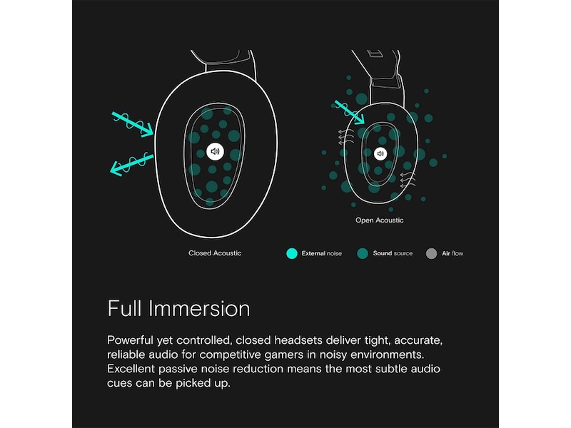 The closed acoustic design eliminates high frequencies while a built-in ANC slider on the headset gets rid of low frequencies to reduce distractions for full immersion in the game experience. ANC is especially useful for constant background noise like those experienced on your commute.