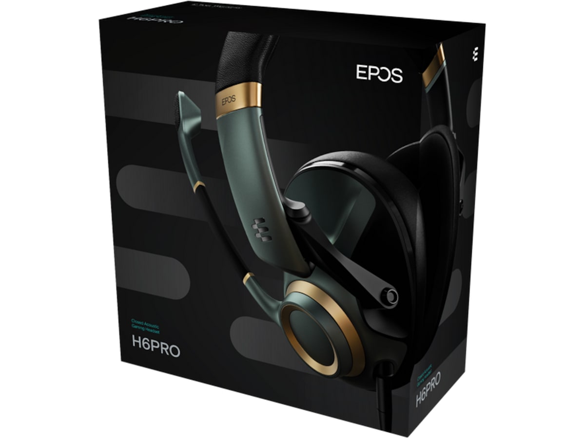I H6PRO-esken finner du utskiftbare kabler til PC, Mac®, PS4™, PS5™, Xbox Series X|S, Xbox One og Nintendo Switch. Du kan også pare dette headsettet med en rekke EPOS-lydkort for enda bedre gaminglyd.