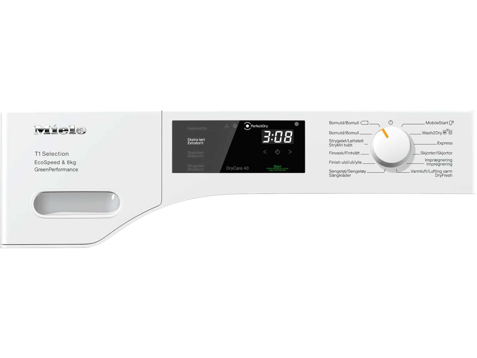 T1 Varmepumpetørketrommel med A+++ og DryCare 40 for effektiv og skånsom tørking.