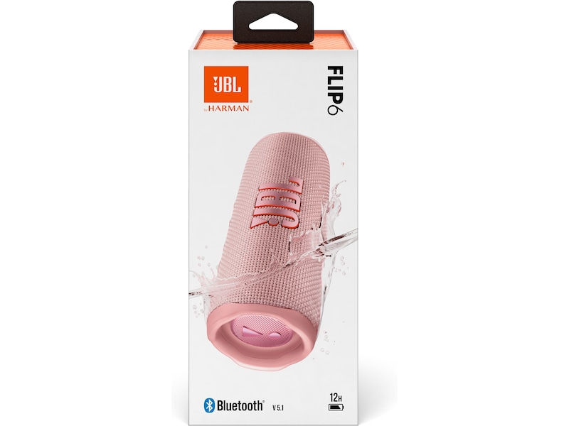 Som den perfekte følgesvennen for kraftig lyd på farten, har JBL Flip 6 tilkoblingsmuligheter og holdbarhet.