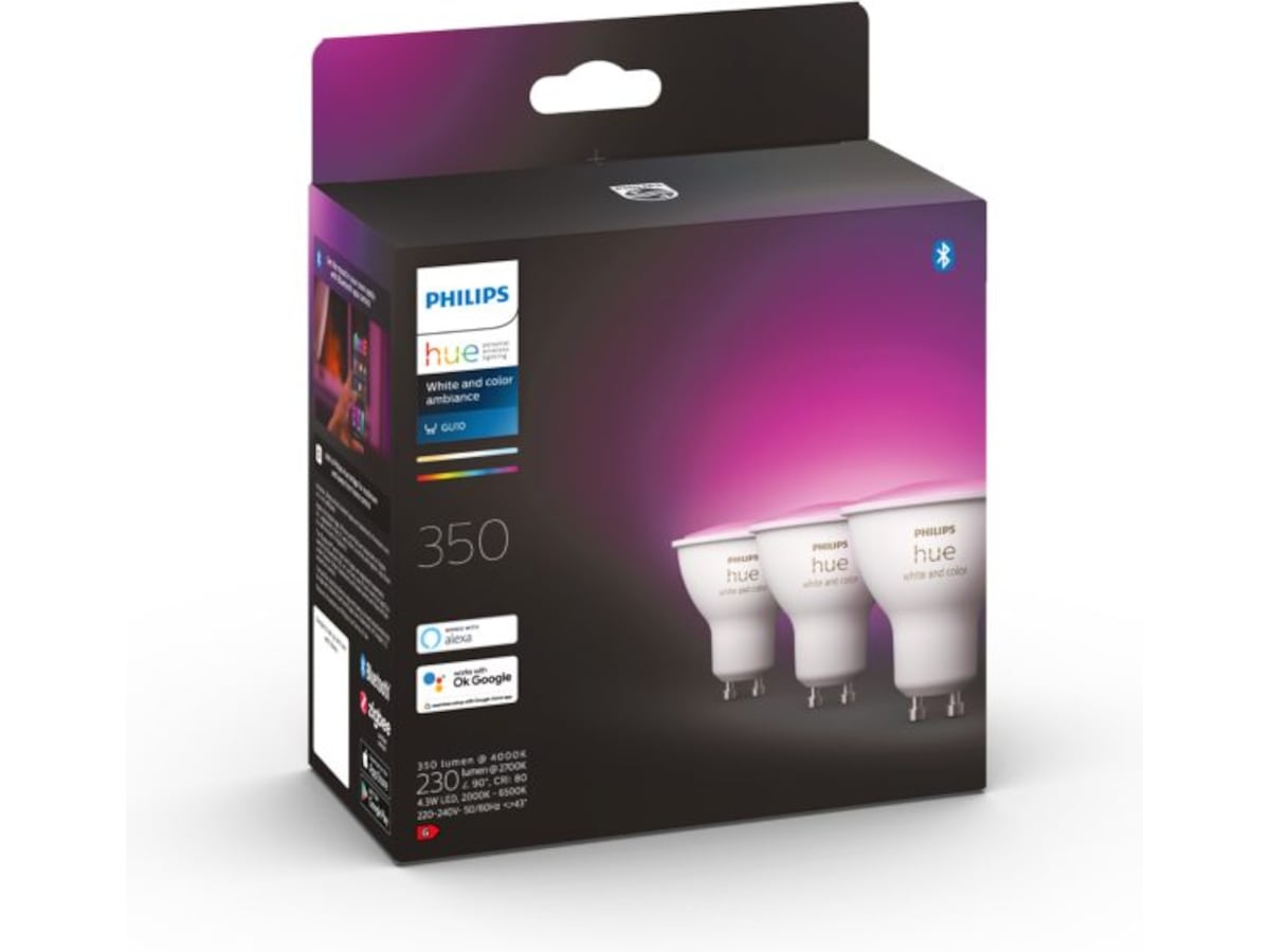 Philips Hue WCA GU10 Lyspære, 4.3W 3PK