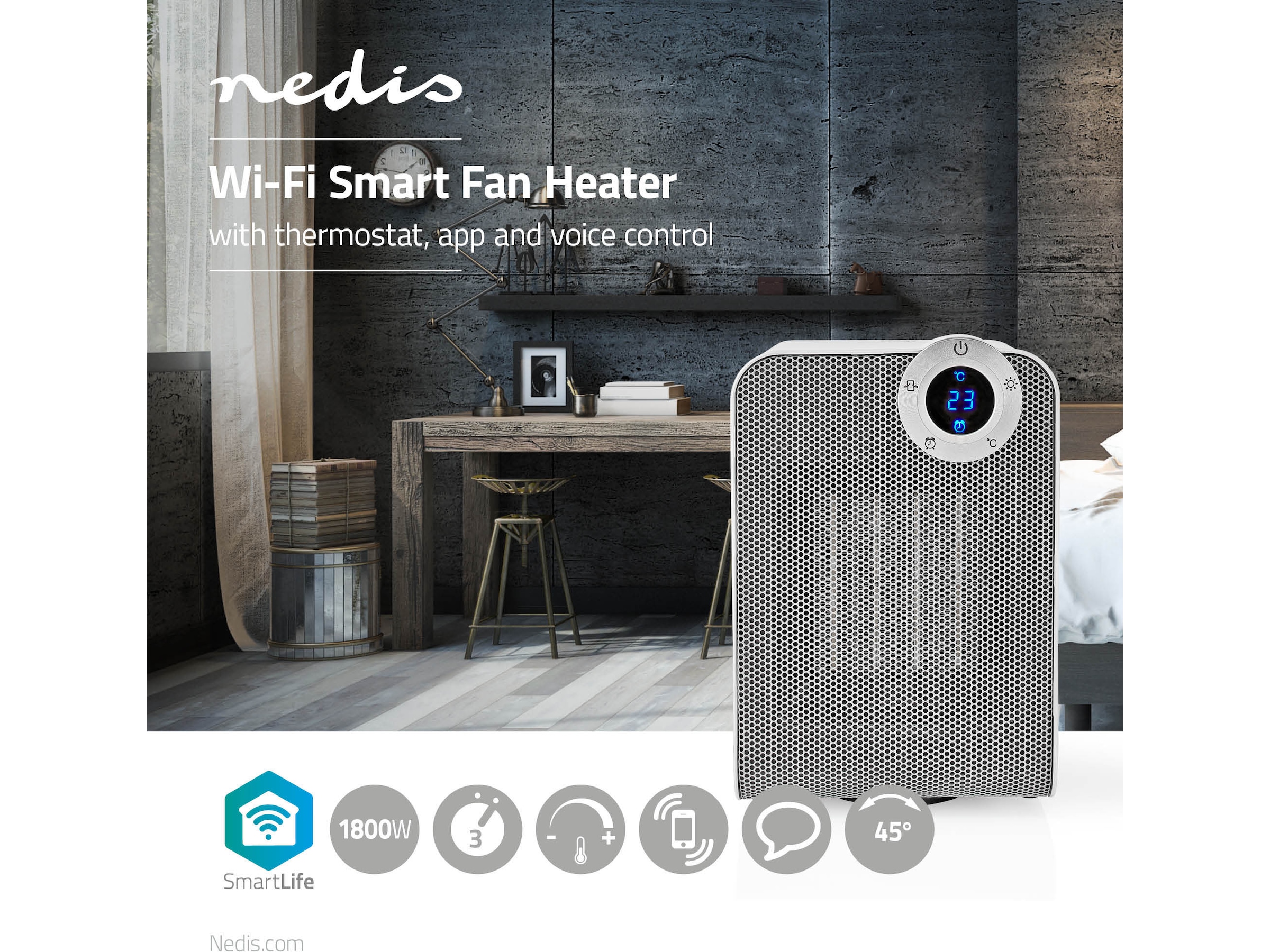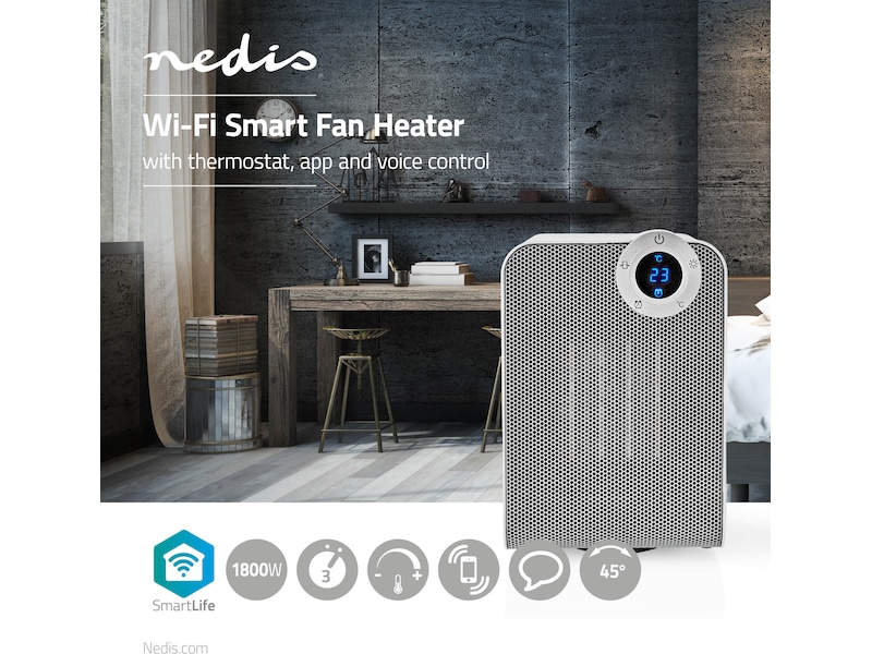 Denne Wi-Fi-smartvifteovnen fra Nedis® kan brukes alene, eller i kombinasjon med de andre Nedis SmartLife-enhetene.