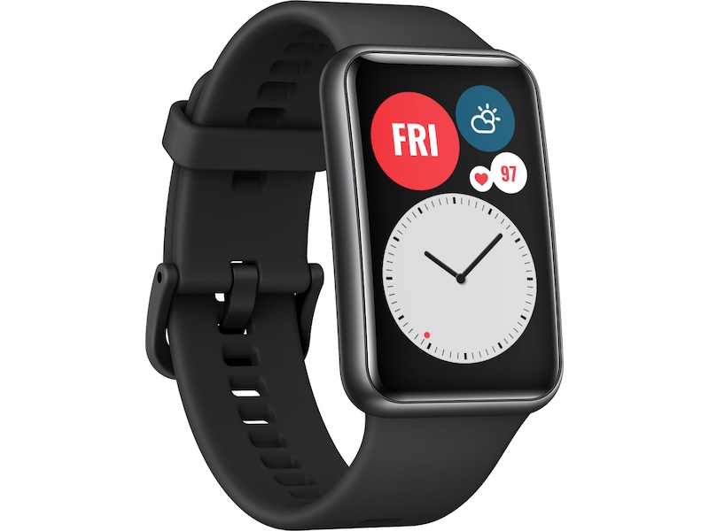 HUAWEI WATCH FIT har en nydelig 1,64" rektangulær AMOLED-skjerm og 280 x 456 HD-oppløsning, og leverer en ekstra klar og bred visningsopplevelse. Automatisk lysstyrkejustering gir bedre visning i sollys, mens de seks urskivene som alltid er på3, lar deg uttrykke din personlige stil og stemning for dagen.