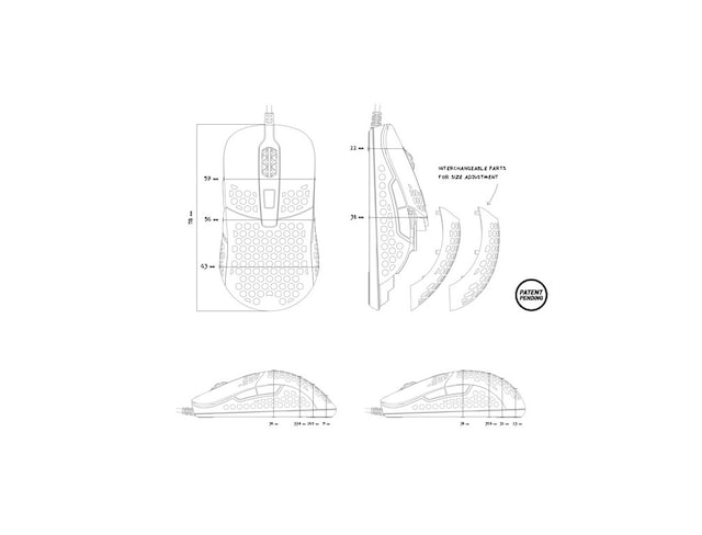 M42 har 100 % PTFE-skøyter med avrundede kanter for jevnere glid, mens dens matte UV-belegg i kombinasjon med hullstrukturen gir et stødigere grep. Forbedrer luftstrømmen under håndflaten, og hullene hjelper deg også å holde deg komfortabel.