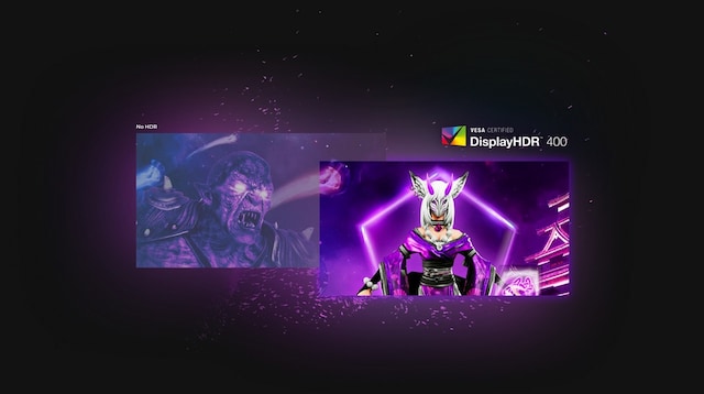 Selv det laveste nivået av High Dynamic Range-funksjonen (HDR) utgjør en betydelig oppgradering over vanlige skjermer. Den maksimale lysstyrken på 400 cd/m² gir skjermen din mulighet til å perfeksjonere bildekvaliteten med et mangfoldig fargespekter og mer varierende kontrast. VESA-sertifikatet sikrer detaljrike og realistiske framstillinger av spill- og filmverdener.