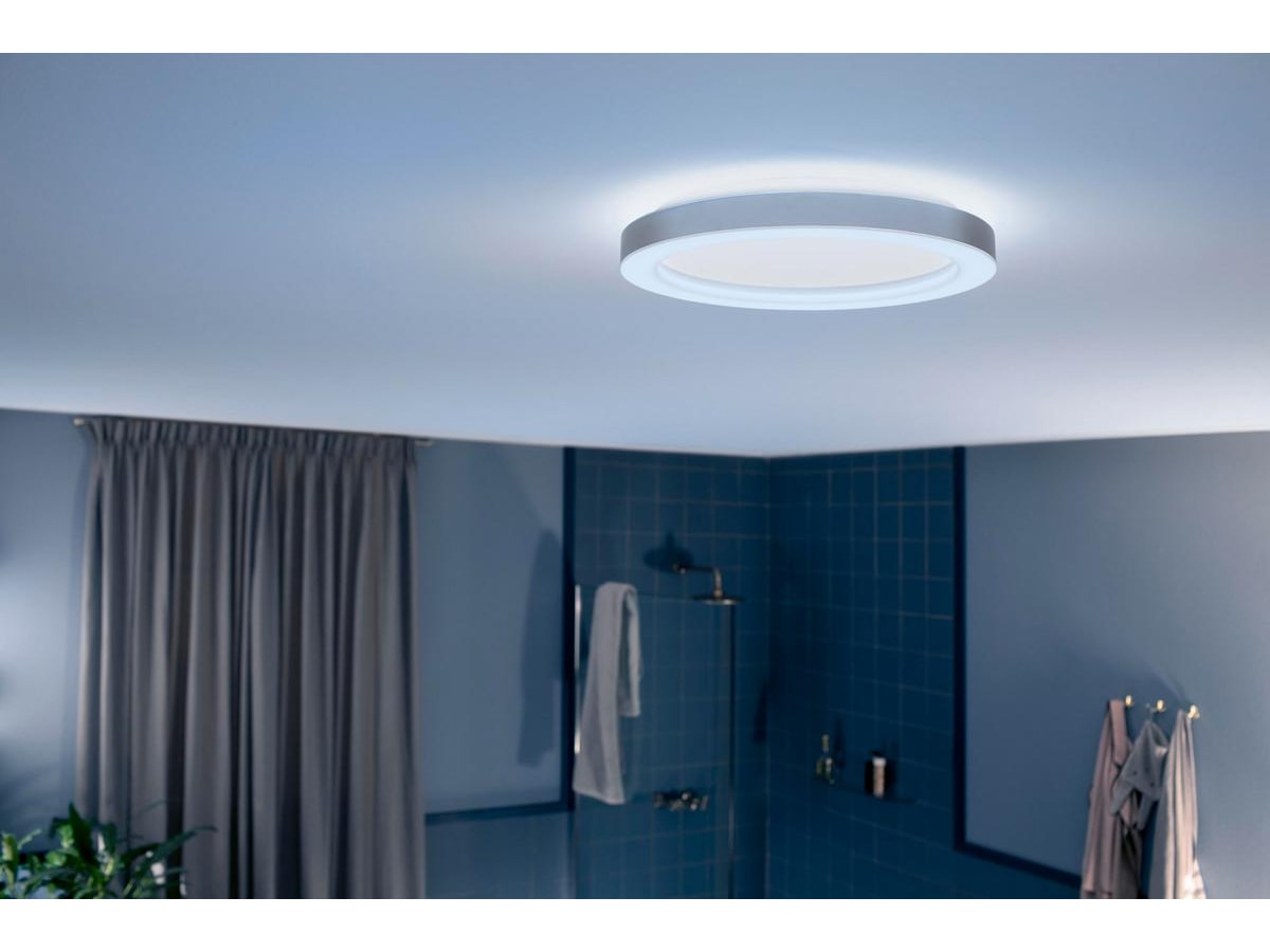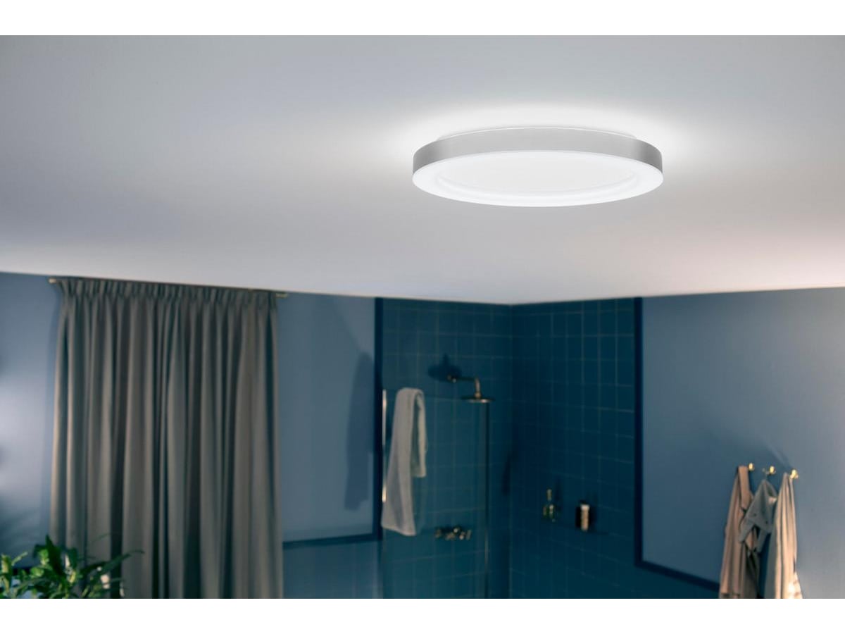 Denne taklampen er stilig og elegant, og holder seg nær taket for en svært lav profil. Lyset spres jevnt i både mindre og større baderom. White ambiance LED-modulen kan veksle mellom kalde og varme nyanser av hvitt lys.