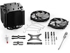 Selv ved 100 % PWM-viftehastighet er støyen på ubetydelige 24,3 dB(A)De 2 Silent Wings PWM-viftene har avanserte væskedynamiske lagre, glatte 6-polede motorer og luftstrømsoptimaliserte vifteblader. Frontviften Silent Wings 3 sørger for ekstremt høyt lufttrykk, takket være et traktformet luftinntak i rammen. Frakoblet viftefeste med vibrasjonsdempende elementer på kjøleribben.