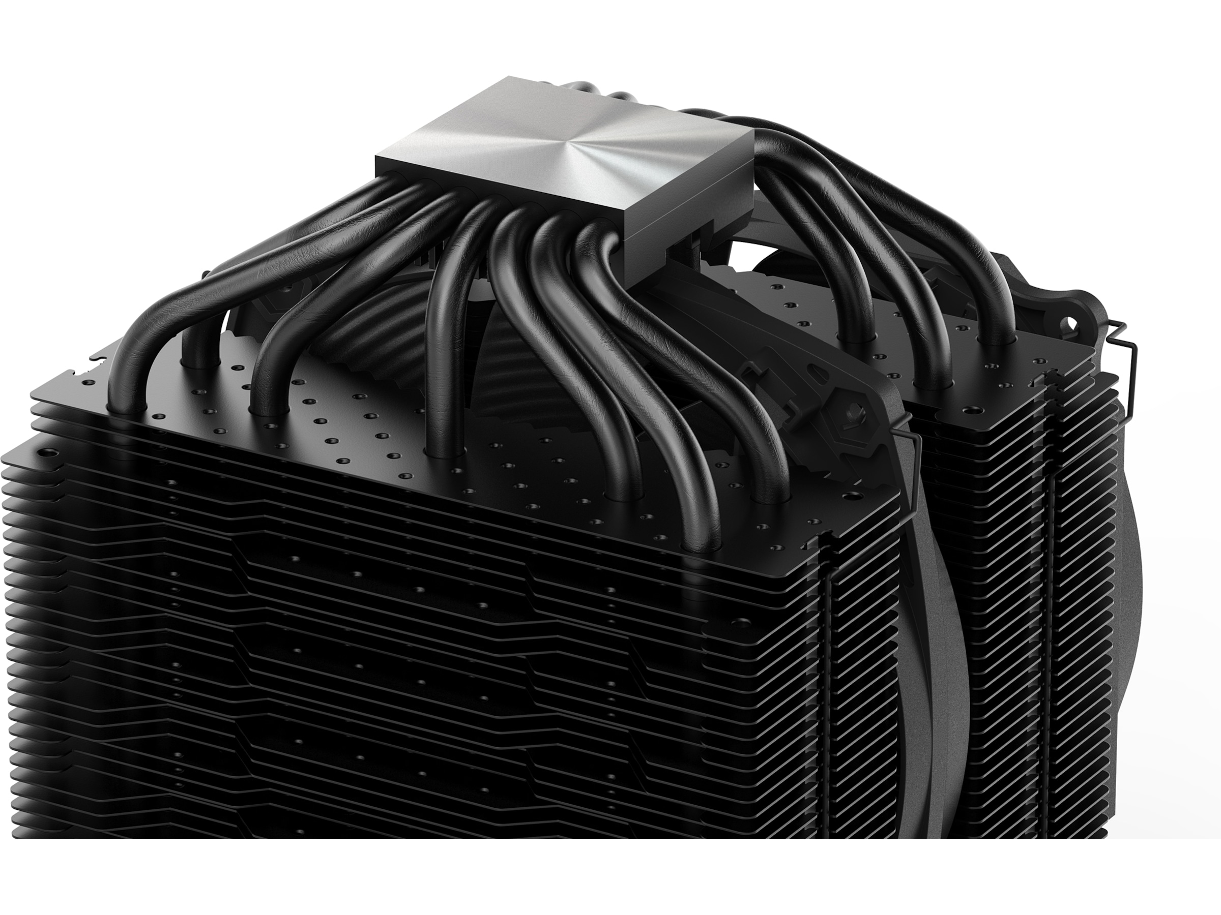 Kjernefunksjonene som resulterer i avansert kjølingDark Rock Pro 4 er utstyrt med sju 6 mm varmerør i kobber med avansert teknologi som maksimerer varmeledningsevnen. Luftstrømsoptimaliserte, bølgeformede kjøleribber med små prikker på overflaten øker luftsirkulasjonen. Det spesielle svarte belegget med keramiske partikler muliggjør en perfekt overføring av varme.