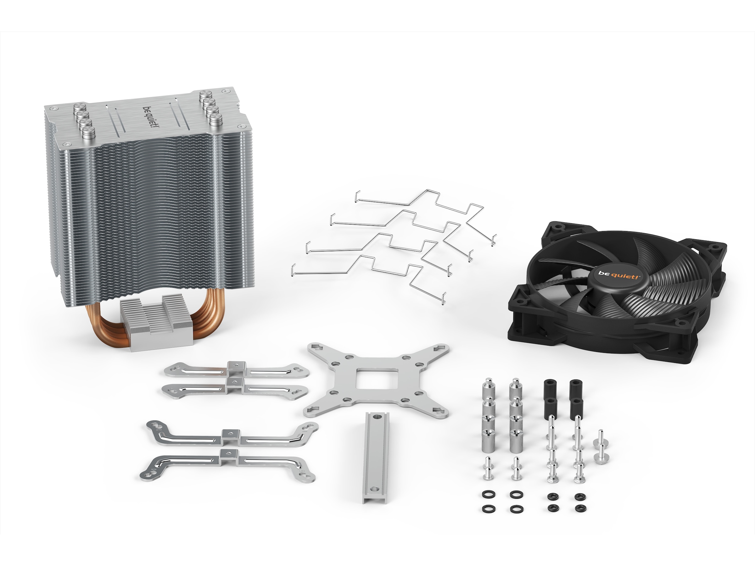 Pure Rock 2 is be quiet!’s CPU cooler for silent multimedia and graphics systems. It provides an excellent price-to-performance ratio with 150W TDP cooling efficiency, four 6mm heat pipes, a Pure Wings 2 120mm PWM fan and convenient design for mounting from atop the motherboard.