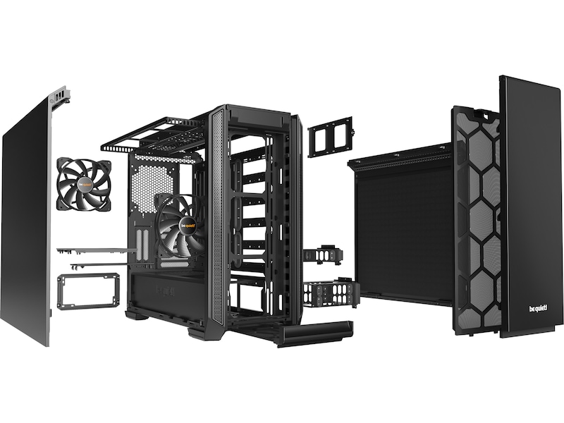 Til tross for sin kompakte design, gir Silent Base 601 Window sjenerøse dimensjoner og utskjæringer, også for installering av et E-ATX-hovedkort. Det smarte arrangementet av komponentene gjør også at flere skjermkort og store kjølere passer godt inn.