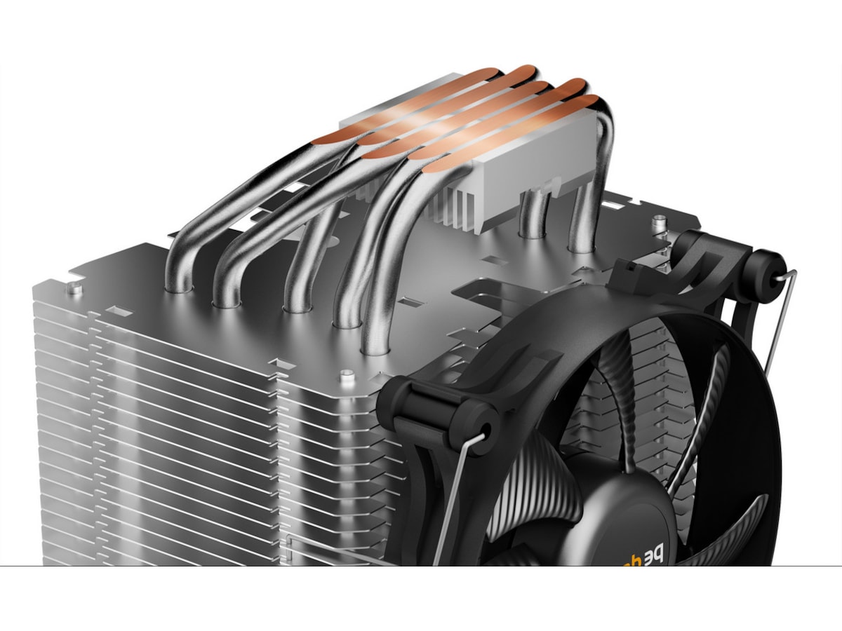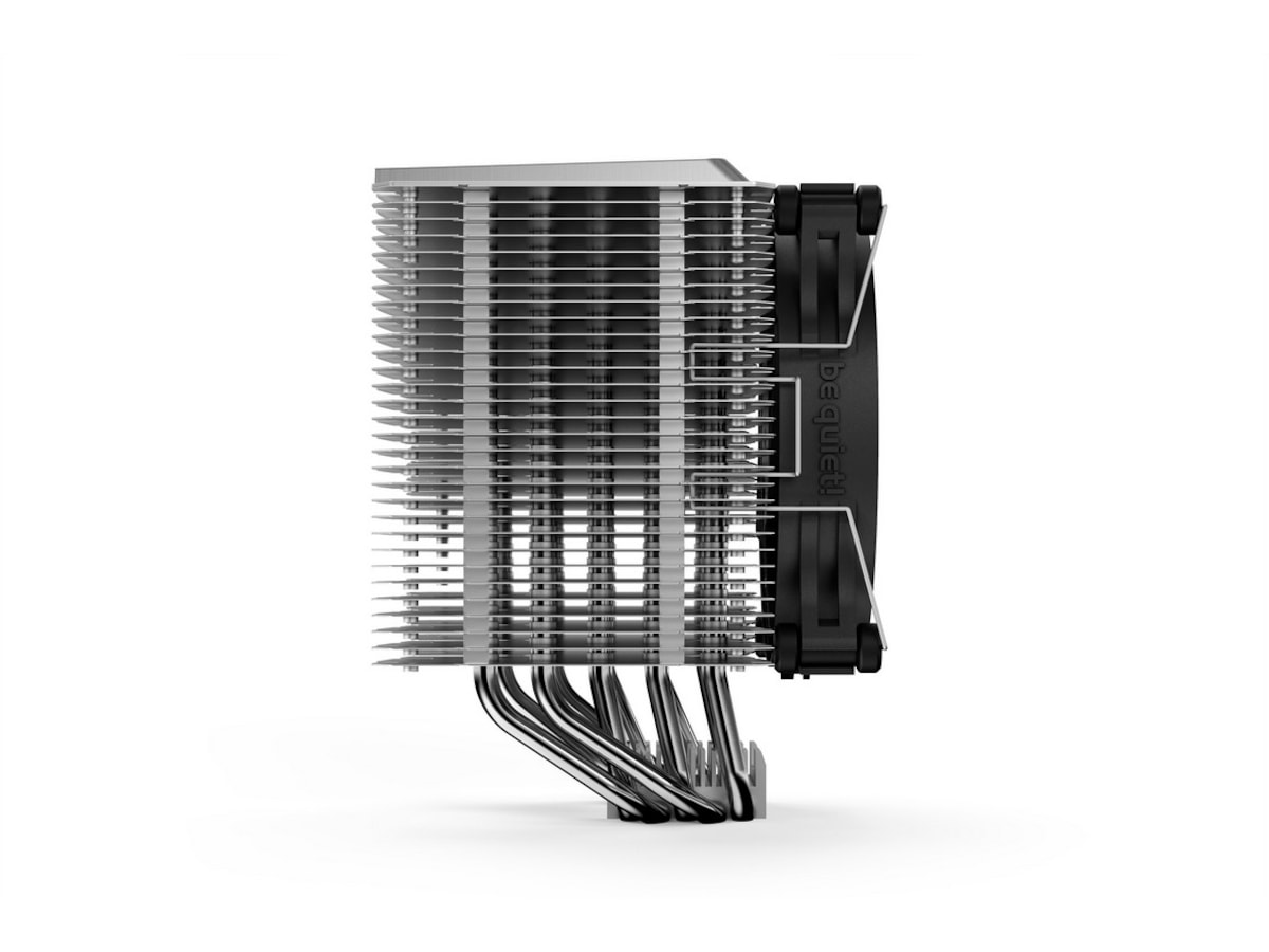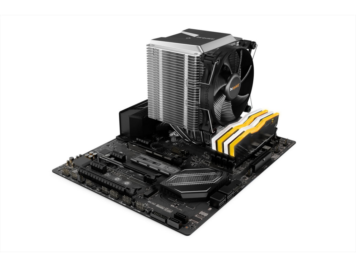 En høy ribbedeling og lav luftmotstand sikrer best mulig ytelse i kombinasjon med den valgte viften. Den utkoblede Shadow Wings 2 120 mm PWM-høyhastighetsviften fungerer på bare 24,4 dB(A), selv på makshastigheten på 1600 rpm.