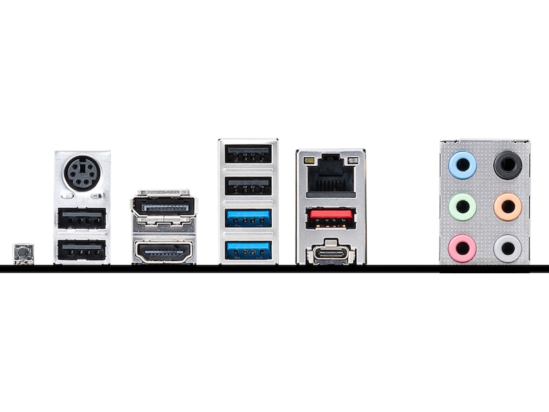 4 x USB 2.0, 1 x DisplayPort, 1 x HDMI, 1 x lydinnlinje - minijakk, 1 x USB-C Gen2x2, 1 x lydutlinje (bakre) - minijakk, 1 x lydutlinje - minijakk, 2 x USB 3.2 Gen 1, 1 x lydutlinje (senter/subbasshøyttaler) - minijakk, 1 x LAN (2.5Gigabit Ethernet), 1 x PS/2-tastatur / -mus, 1 x lydutlinje (side-surround) - minijakk, 1 x mikrofon - minijakk, 1 x USB 3.2 Gen 2