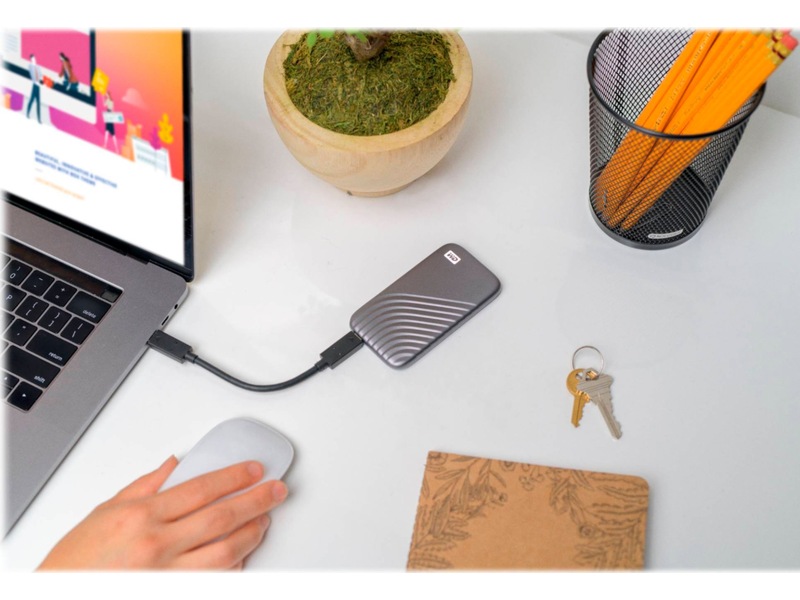 Ingen installasjon er nødvendig. Klar til bruk rett ut av esken og kompatibel med PC og Mac. My Passport™ SSD er utstyrt med USB 3.2 Gen-2-teknologi, og leveres med en USB-C™-kabel og USB-A-adapter for å fungere med eldre systemer