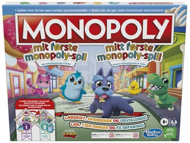 Mitt første monopol er et morsomt læringsverktøy for familier. Spillet har et dobbeltsidig spillebrett med 2 spillnivåer, slik at dere kan velge det nivået som passer best til familien.
