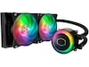 MasterLiquid alt-i-ett CPU-væskekjøler er tilpasset, innvendig og utvendig. Denne dobbeltkammerpumpen har en lav profil, og i varmeoverføring utkonkurrerer den forgjengerne sine med ett enkelt kammer.