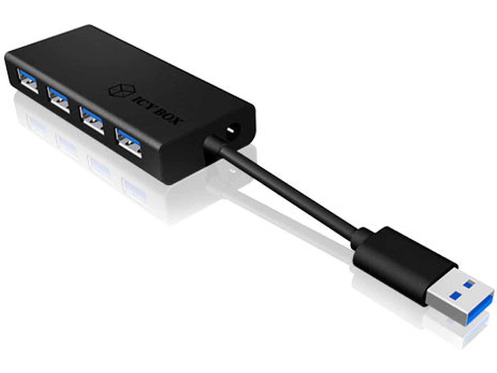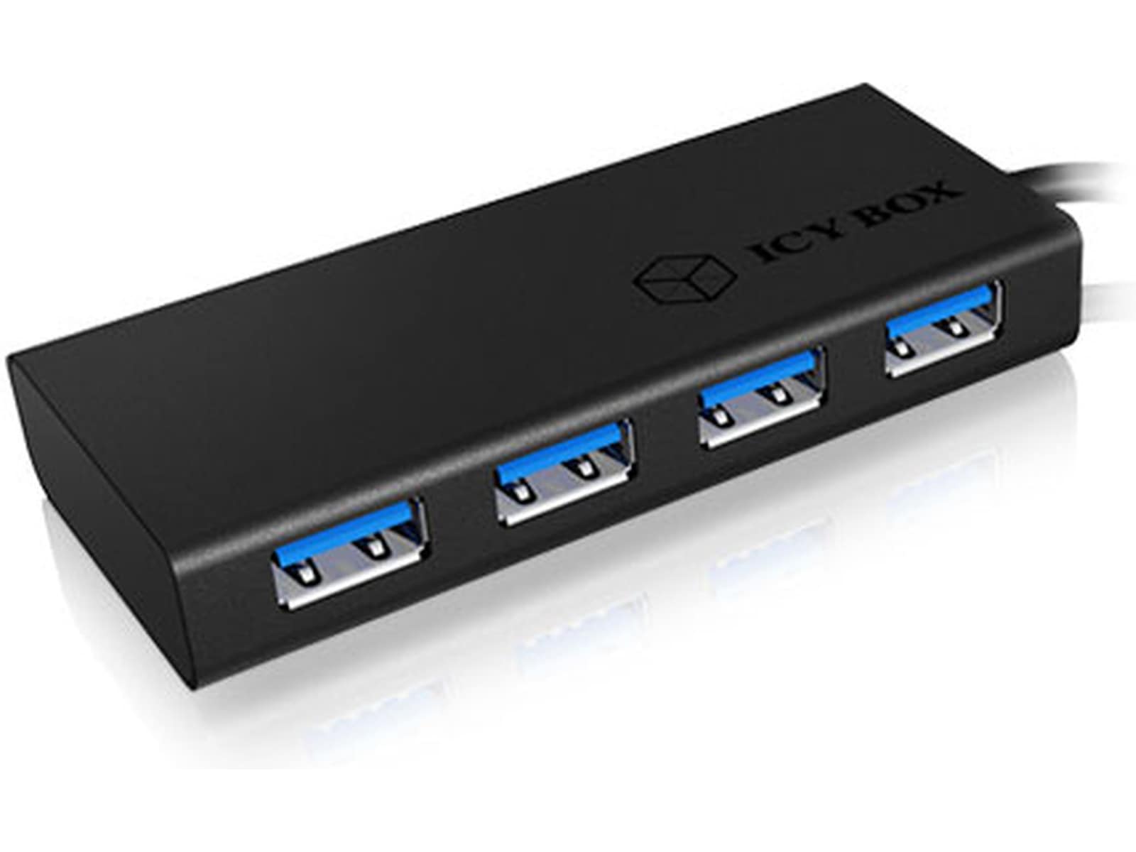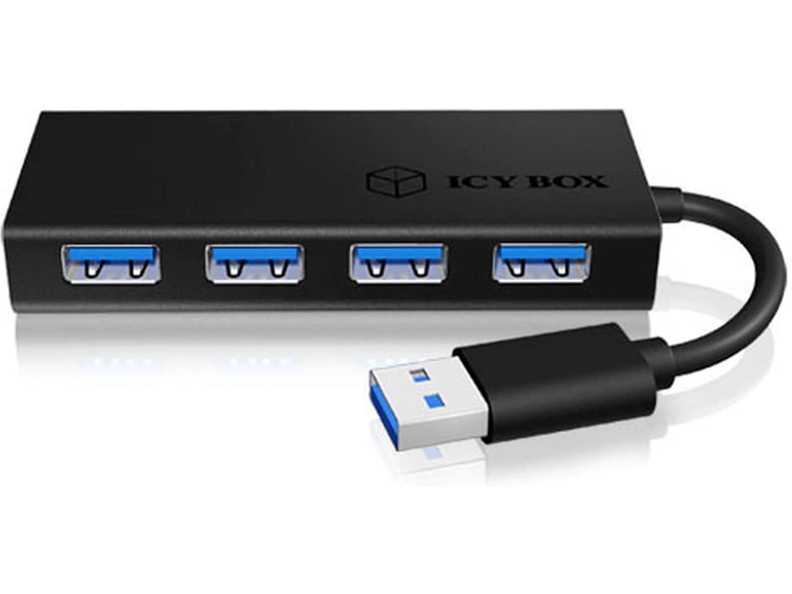 Enkel og effektiv 4-ports USB 3.0-hub i svart aluminiumsinnfatning