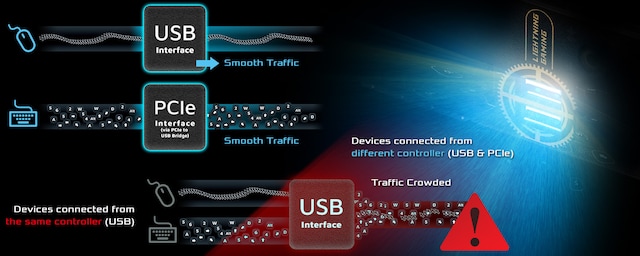 Beregnet på hardcore-gamere og entusiaster! Lightning-gamingporter er hentet fra to forskjellige kontrollergrensesnitt og hjelper gamere med å koble til høyhastighetsmus/tastatur med mindre risiting og ventetid!