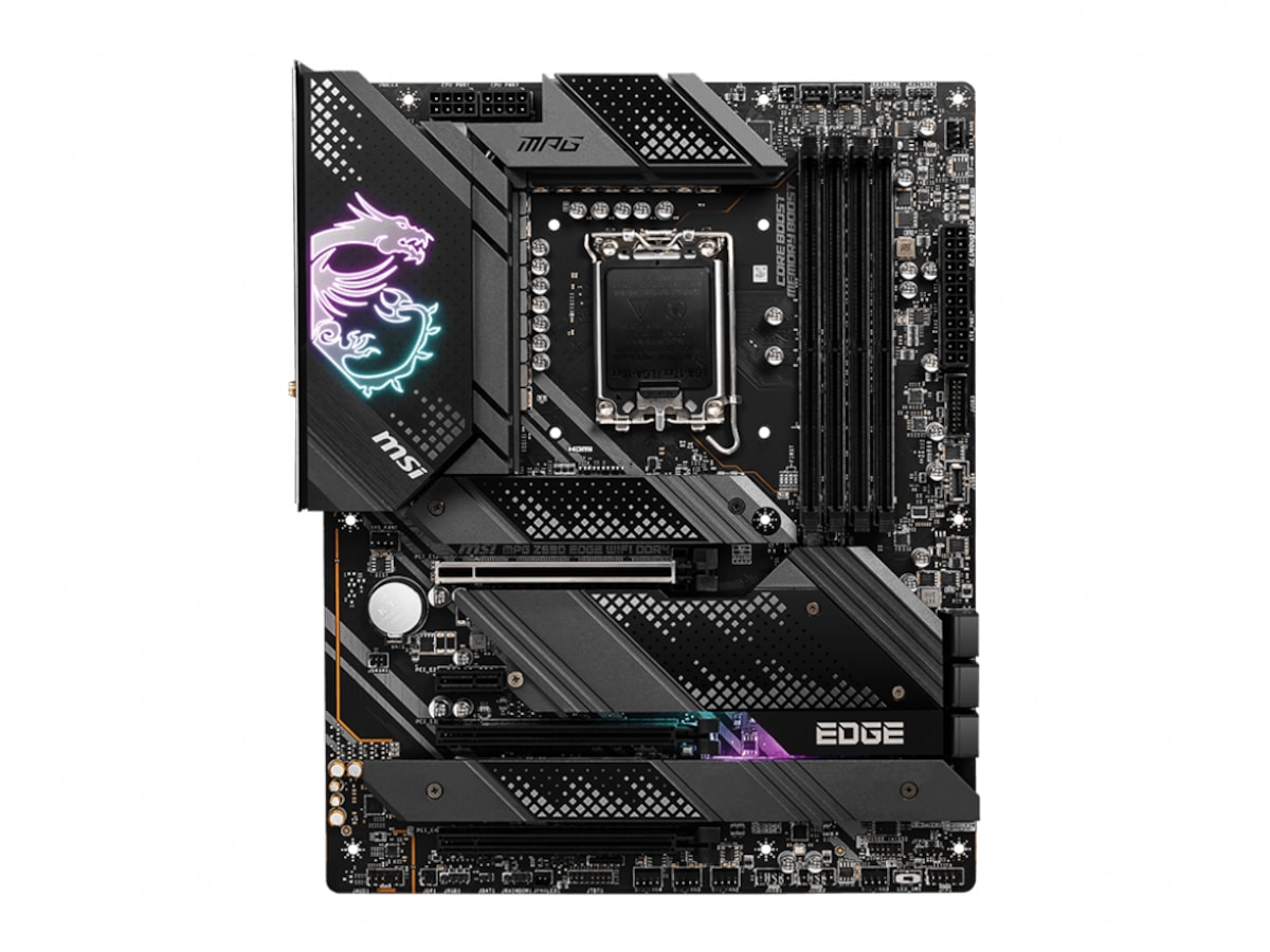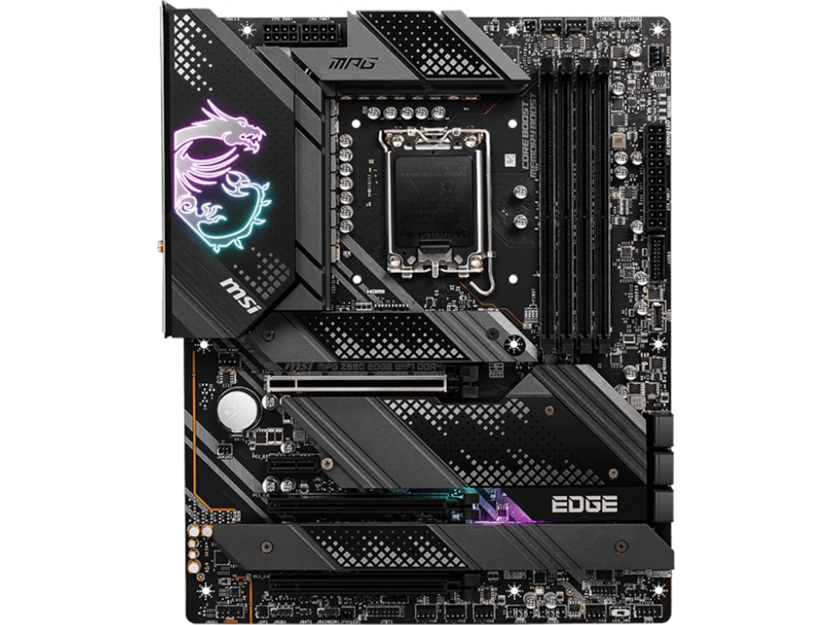 MPG Z690 EDGE WIFI DDR4 har aluminiumsdeksel med VRM-kjøleribbe, varmerør, 7W/mK MOSFET-kjøleputer, M.2 Shield Frozr for å sikre ekstrem ytelse med lav temperatur.