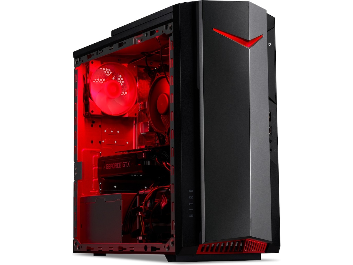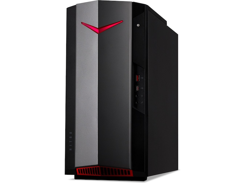 Den brennende hete Nitro 50 spill-PC-en i svart metall er alt drivstoffet du trenger for forsinkelsesfrie spilløkter med høy bildefrekvens. Fortsett og bytt innstillinger til ultra med en injeksjon av 11. generasjons Intel® Core™ i5-prosessor og NVIDIA® GeForce RTX™ 3060Ti-grafikk.