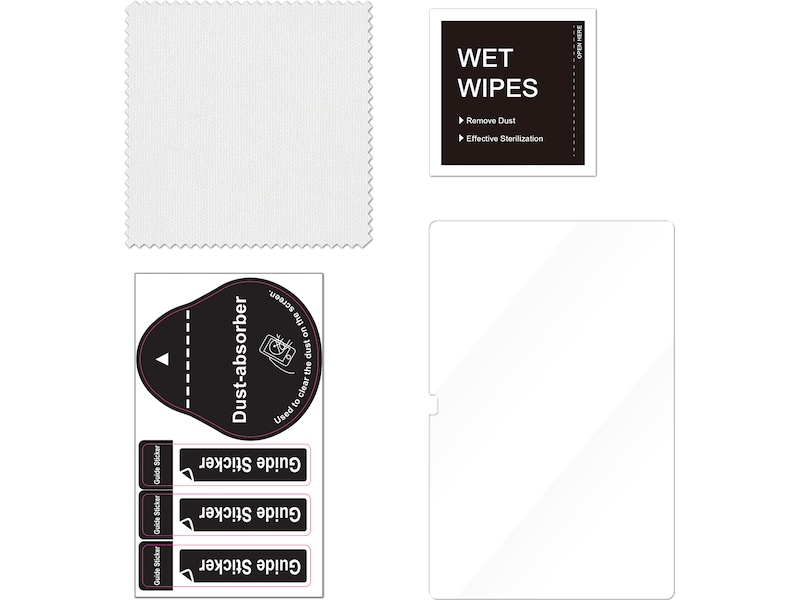 Renseserviett, Skjermbeskyttelse, Føringsklistremerker, Våte renseservietter, Støvfjerningsetikett