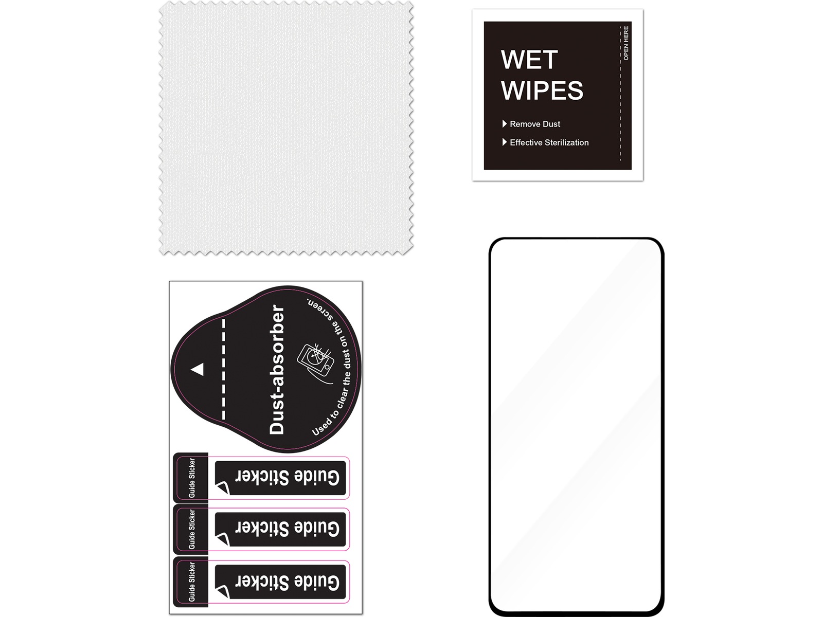 Pakkeinnhold Våte renseservietter, Skjermbeskyttelse, Støvfjerner, Rengjøringsklut