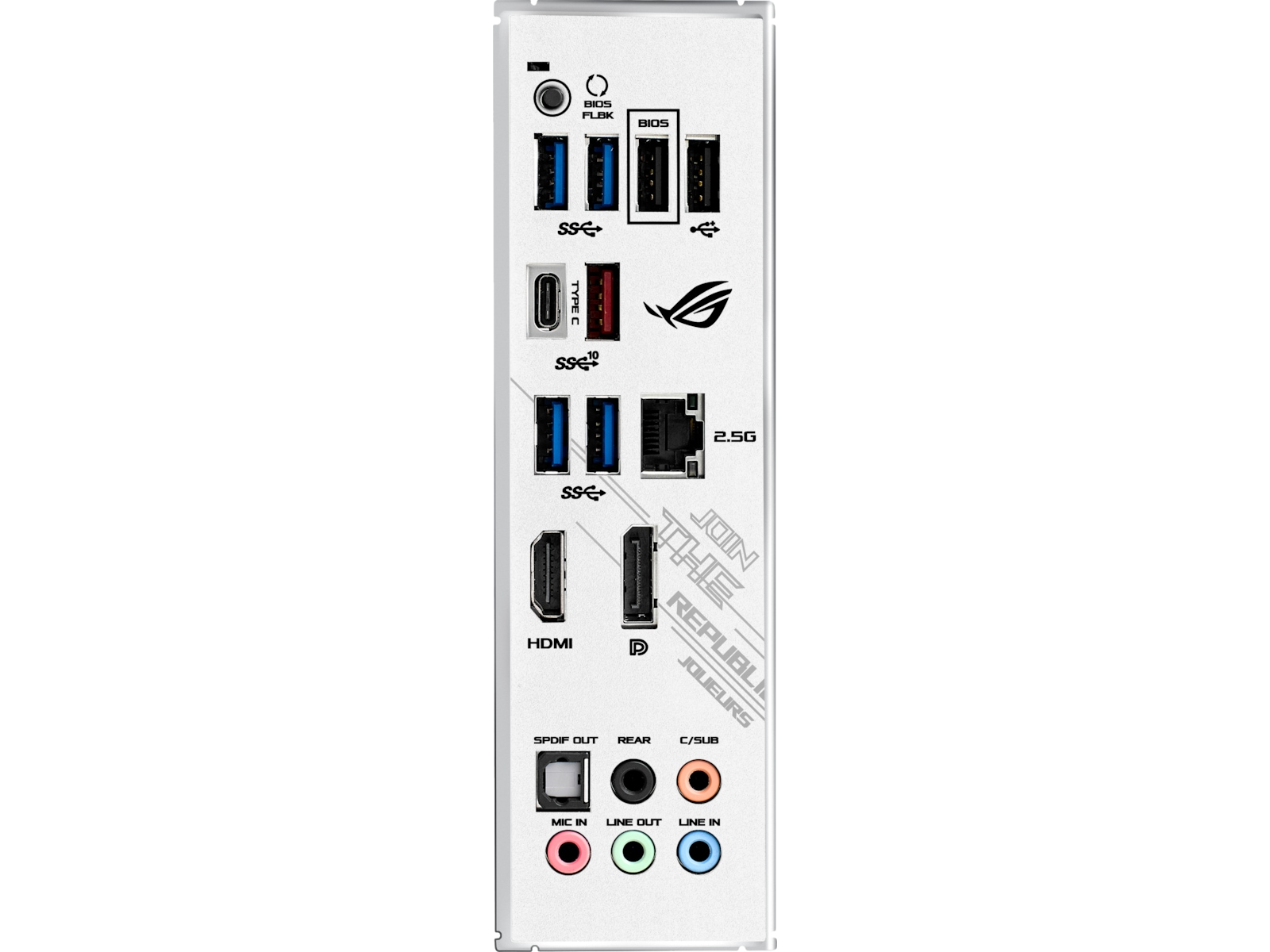 1 x HDMI, 1 x lydutlinje (bakre) - minijakk, 1 x TOSLINK, 1 x USB 3.2 Gen 2, 4 x USB 3.2 Gen 1, 1 x lydinnlinje - minijakk, 1 x DisplayPort, 1 x lydutlinje - minijakk, 1 x mikrofon - minijakk, 1 x lydutlinje (senter/subbasshøyttaler) - minijakk, 1 x LAN (2.5Gigabit Ethernet), 2 x USB 2.0, 1 x USB-C Gen2