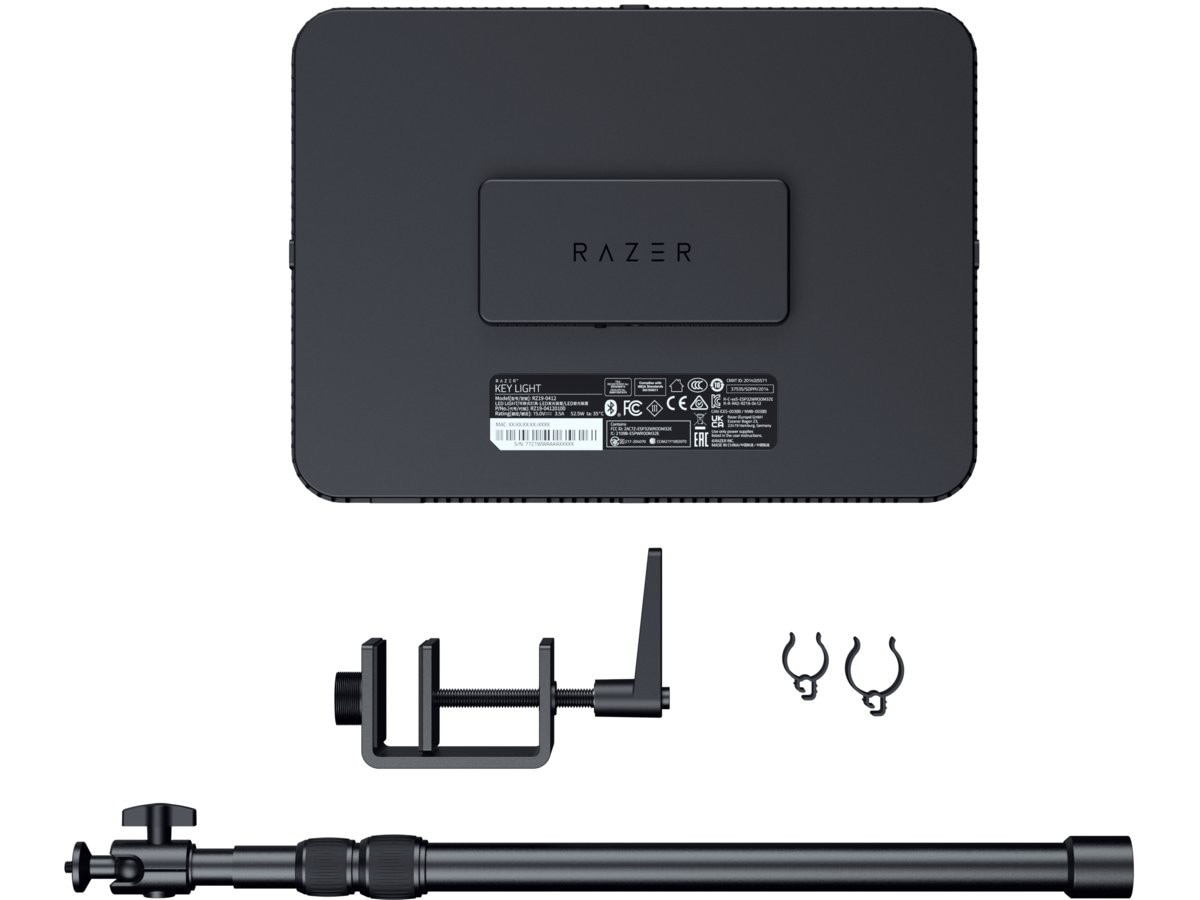 Razer Key Light Chroma tar knapt opp plass takket være et slankt klemmefeste som er lett å feste til bordet ditt, og den har en uttrekkbar stang slik at du kan få den ideelle lysvinkelen.