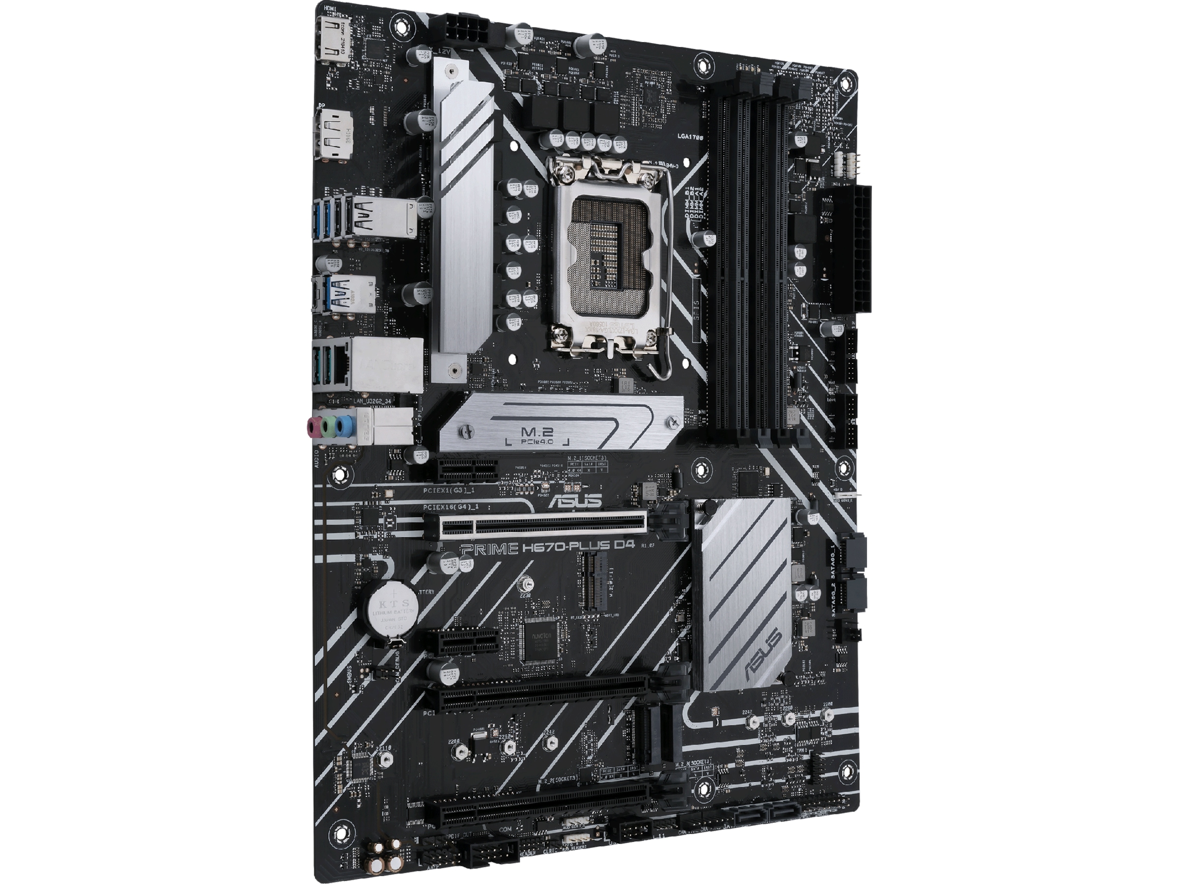 Prime H670-PLUS D4 tilbyr totalt tre M.2-spor som støtter dataoverføringshastigheter på opptil 64 Gbps via PCIe® 4.0, noe som muliggjør raskere oppstart og innlasting av apper med operativsystemet eller applikasjonsstasjoner.