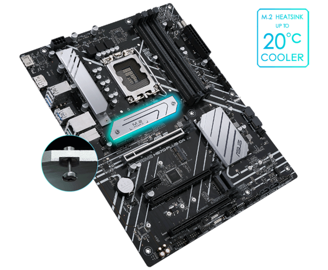Stabil strøm er avgjørende for å kunne dra full nytte av ytelsen til 13. og 12. generasjons Intel-prosessorer. Prime H670-PLUS D4 er laget for å imøtekomme kravene fra disse CPU-ene med mange kjerner.