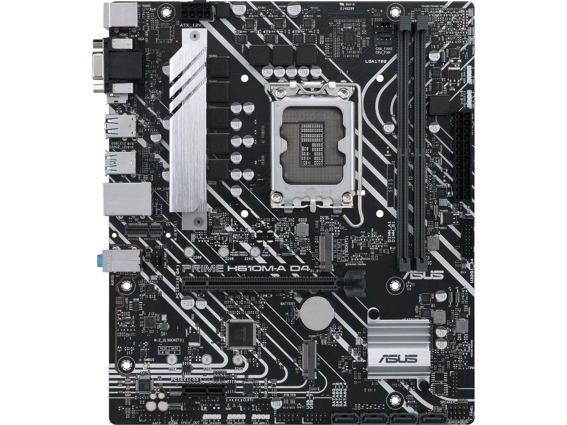 Prime H610M-K D4 tilbyr ett M.2-spor som støtter dataoverføringshastigheter på opptil 32 Gbps via PCIe 3.0, noe som gjør det mulig med raskere oppstart og innlastingstider for apper med operativsystemer eller applikasjonsdisker.