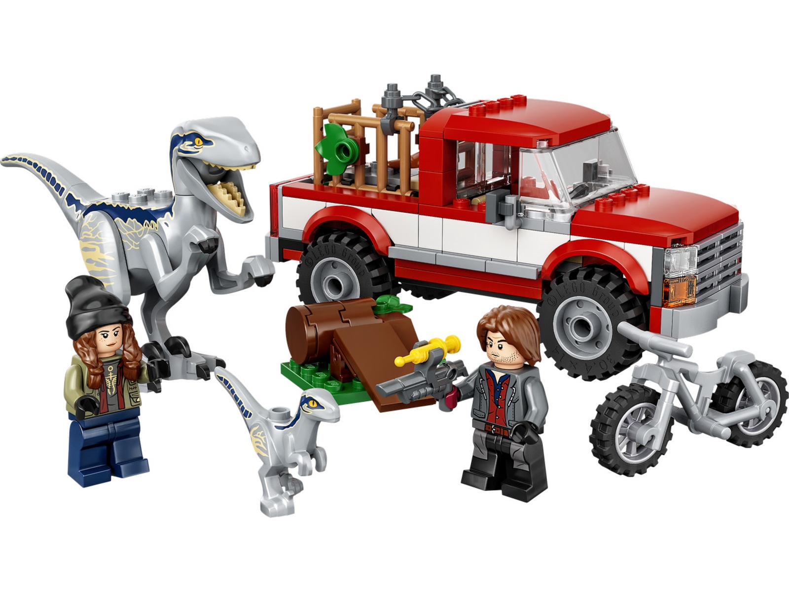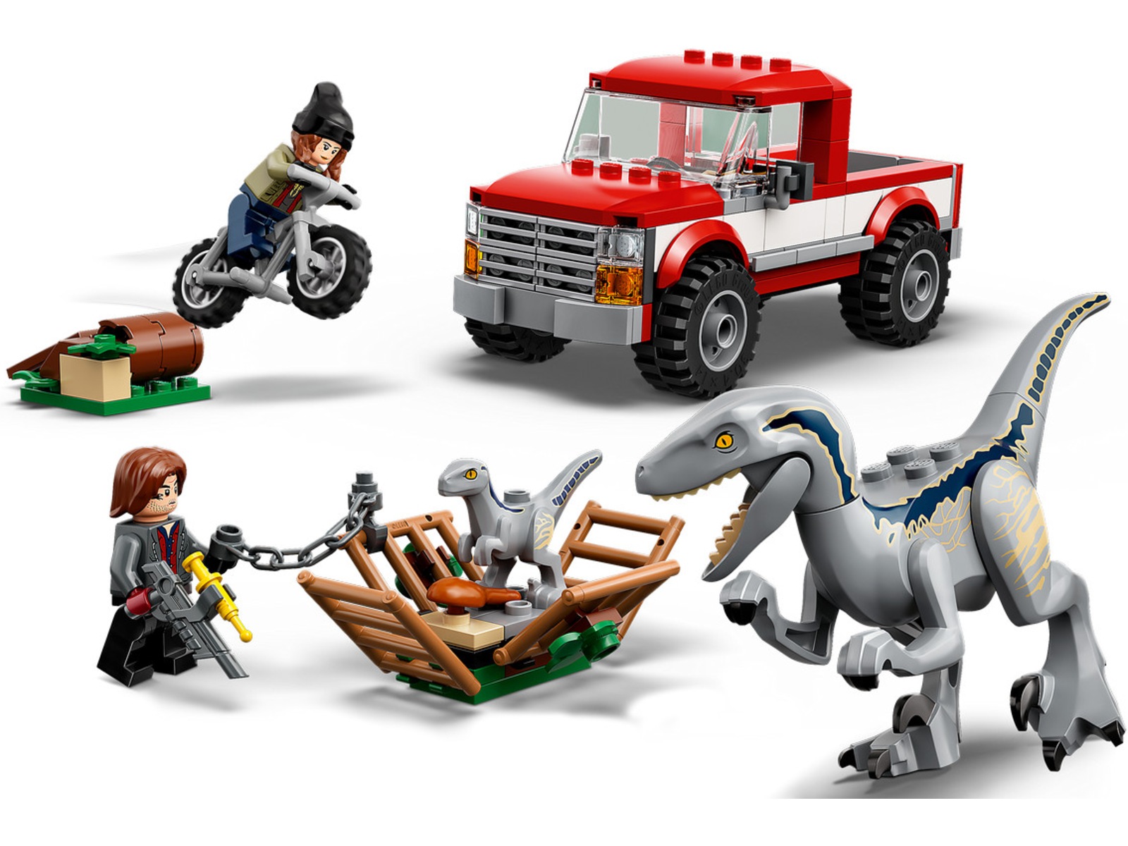 Settet er inspirert av en spennende scene i filmen Jurassic World Dominion og inkluderer en byggbar lekelastebil, sykkel og dinosaurbur med felle og kyllinglår som åte for dinosaurene. Kreativ lek Lekesettet for barn fra seks år og oppover inkluderer også minifigurer av Maisie og Rainn Delacourt med bedøvelsespistol samt dinosaurfigurer av Blue og Beta som barn kan bruke i gøyal og fantasifull rollelek. Esken inkluderer brukervennlige instruksjoner som gjør at selv nybegynnere kan bygge modellene og føle mestring. Settet kan kombineres med andre byggeleker i LEGO Jurassic World serien for enda mer actionfylt lek. Fantastiske gaver Den populære LEGO Jurassic World produktserien inneholder gaveideer for fans i alle aldre og inkluderer støpte, byggbare dinosaurfigurer, minifigurer og detaljerte kjøretøy som kan lekes med og stilles ut.