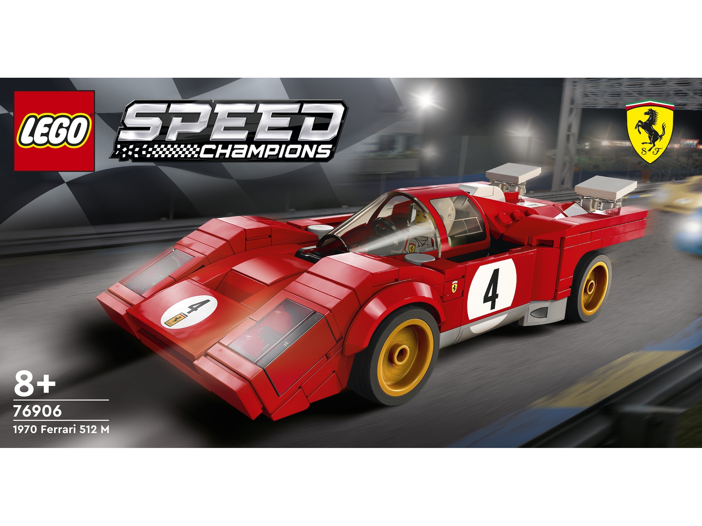 Samle, leke og stille ut – barn og bilinteresserte kan utforske 1970 Ferrari 512 M mens de bygger, og deretter stille ut modellen eller få med seg venner på spennende Speed Champions-billøp