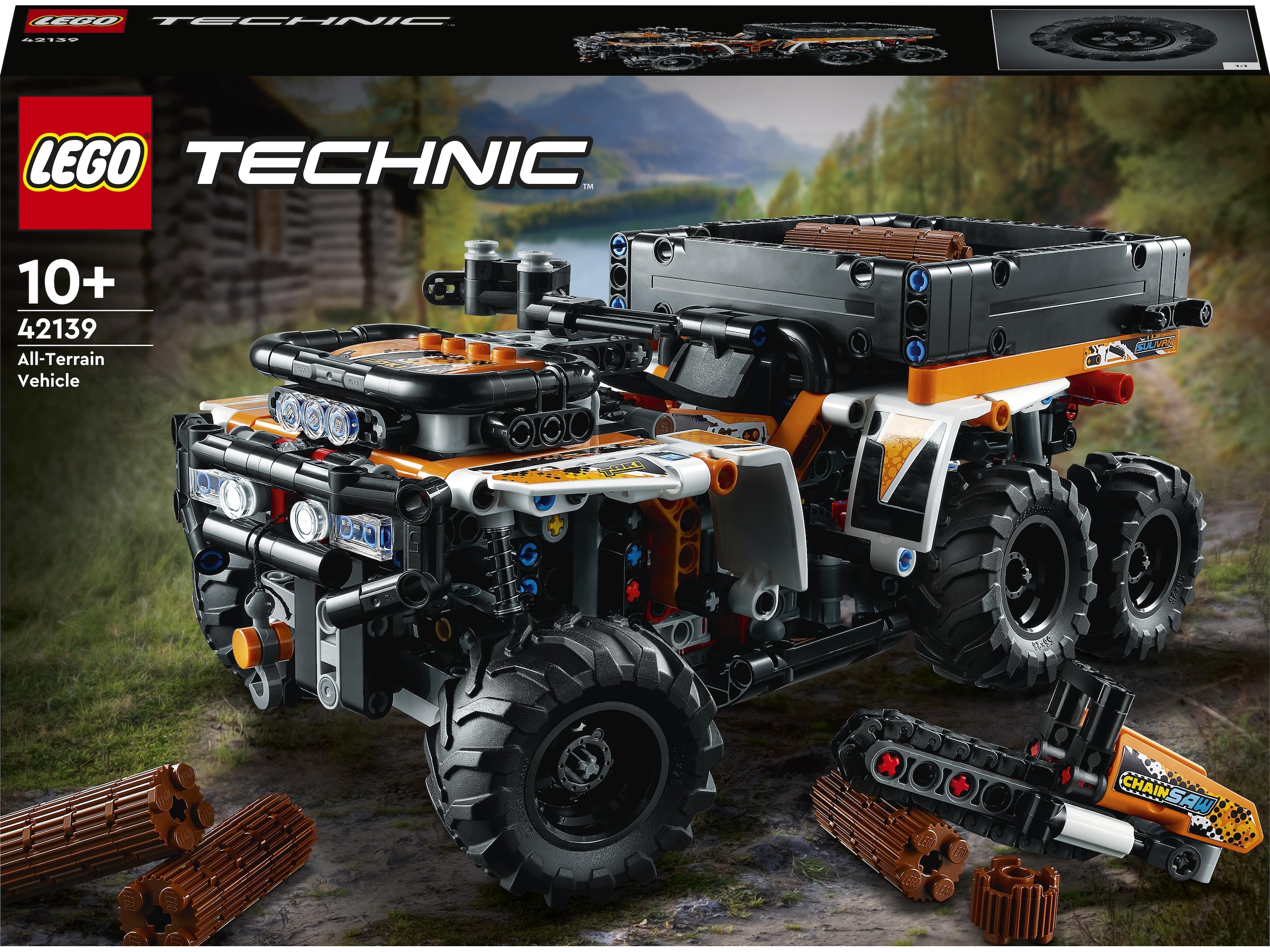 Sjekk ut styremekanismen og støtdempingen, girkassen og motoren med de bevegelige stemplene. ATV-en er også utstyrt med vinsj og lasteplan som kan vippes – her er alt klart for løfting og transport av tung last. Rollespillmoro ATV-modellen inkluderer en lekemotorsag – komplett med realistisk kjede som går rundt. Barn kan leke at de bruker motorsagen for å «sage opp» tømmerstokkene i totalt 20 mindre tømmer-elementer. Settet passer veldig godt for barn og voksne som liker å leke kreativt sammen.