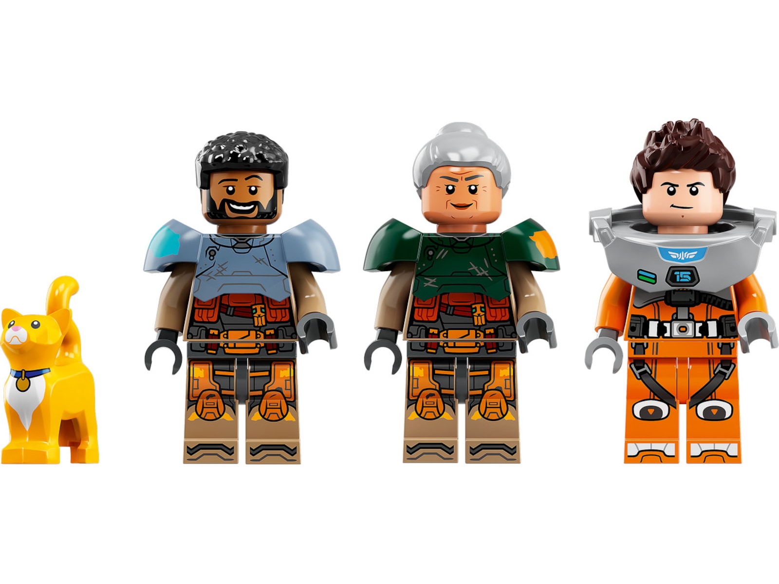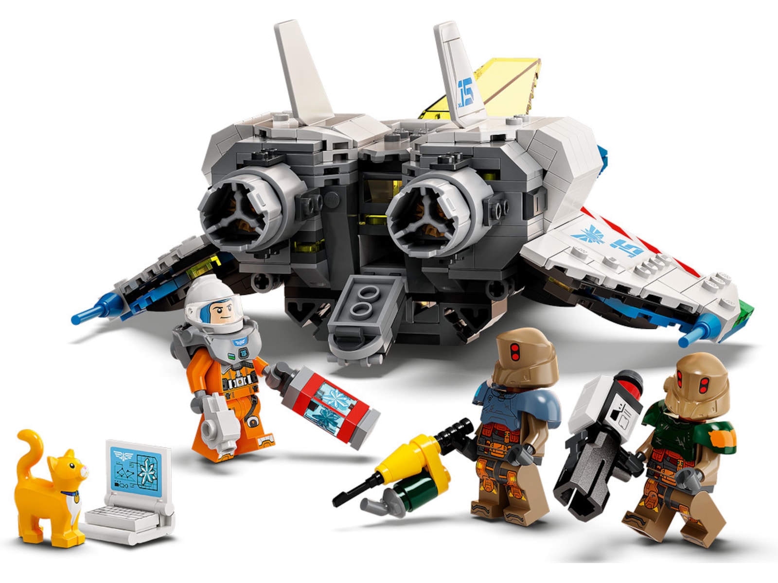 Fantasien får fritt spillerom når de reiser gjennom verdensrommet i sammen med Buzz Lightyear i romskipet hans og skal kjempe mot onde krefter for å redde galaksen. For lek og utstilling Dette tøffe, byggbare lekeromskipet har autentiske detaljer fra Disney og Pixars film Lightyear, Buzz Lightyears opprinnelseshistorie, inkludert en cockpit som kan åpnes og har plass til en LEGO® minifigur av Buzz Lightyear, og en avtagbar brenselcelle. Settet inneholder fire figurer fra filmen og tre våpen, inkludert Darbys rakettutskyter «Mr. Boom», som fans kan bruke for å gjenskape scener fra filmen. Settet inneholder også en sokkel med en plakett, som filmentusiaster kan bruke for å stille ut og vise fram modellen sin på barnerommet