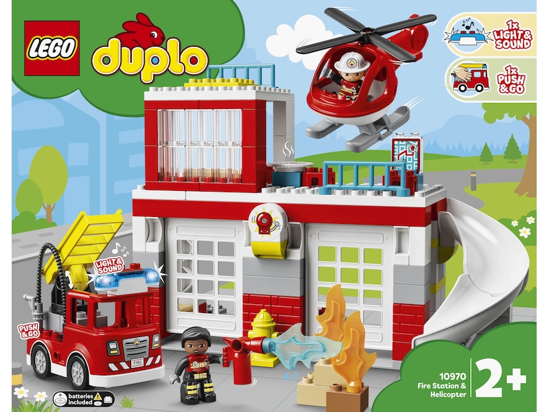 - Travel brannstasjon – LEGO® DUPLO® Rescue Brannstasjon og brannhelikopter (10970) byr på snille figurer, morsomme aktiviteter og mange muligheter for utviklende rollelek