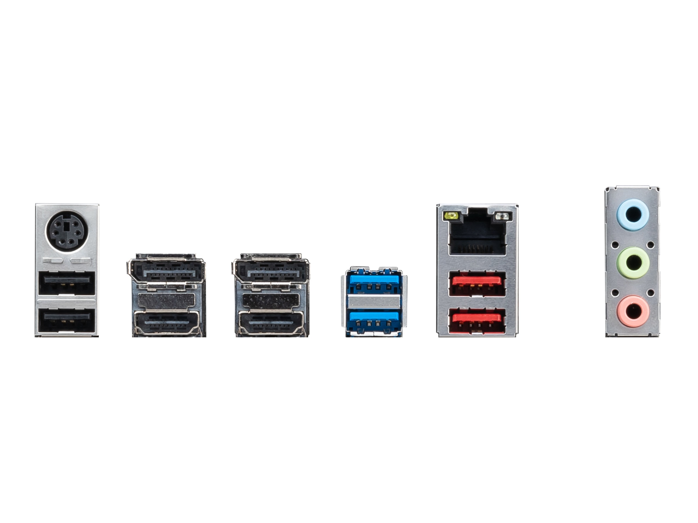 2 x USB 3.2 Gen 1, 2 x HDMI, 1 x PS/2-tastatur / -mus, 2 x USB 2.0, 1 x mikrofon - minijakk, 1 x lydinnlinje - minijakk, 2 x DisplayPort, 1 x lydutlinje - minijakk, 1 x LAN (2.5Gigabit Ethernet), 2 x USB 3.2 Gen 2