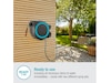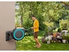 Takket være den praktisk veggbraketten kan slangeboksen svinges i en vinkel på 180 °. Dette lar deg vanne hvert hjørne av hagen din fleksibelt og uten å bøye slangen. Etter bruk kan den kompakte boksenskyves til side på veggen for å spare plass.