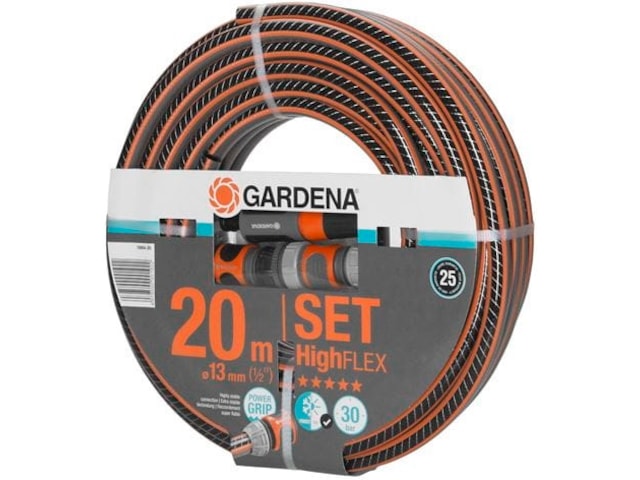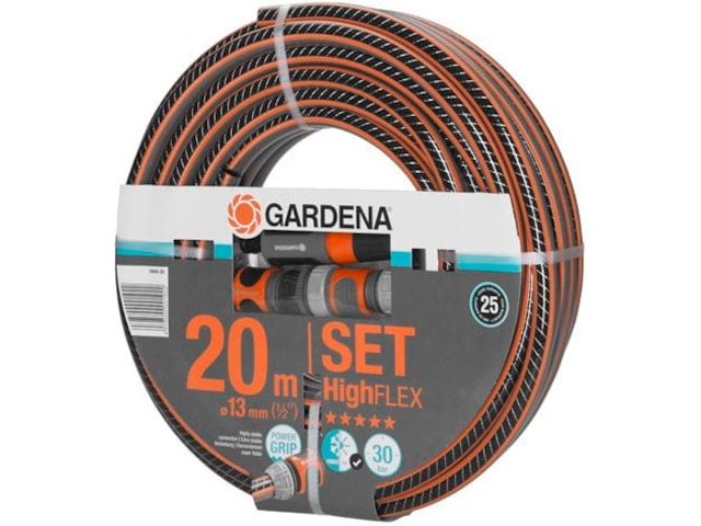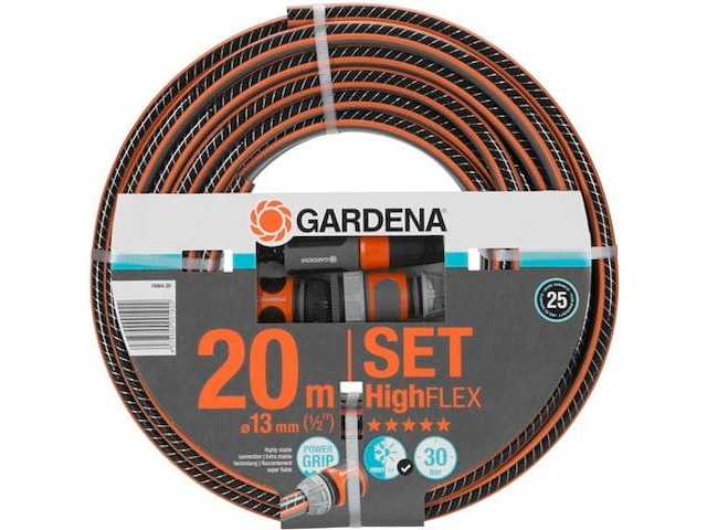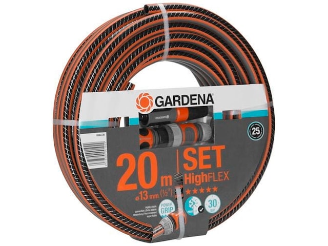Denne pakken inneholder GARDENA Comfort HighFLEX slange med ulike GARDENA systemkoblinger. Power Grip-profilen sikrer perfekt tilkopling mellom slangen og slangekoplingen. Takket være den tette spiralnettingen av høy kvalitet med to spiraler i motsatt retning av hverandre, er slangen trykkbestandig og beholder fasongen, samtidig som den er mer fleksibel i bruk enn Comfort FLEX-slangen. Dette skyldes økt tetthet i spiralene, som gjør slangen mer fleksibel og lettere å håndtere.