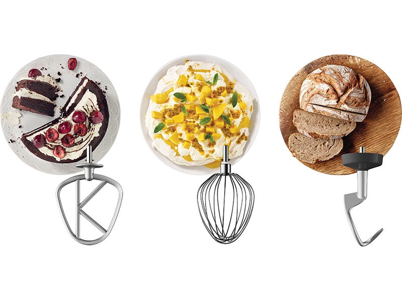 Inkludert tilbehør Ballongvisp, Deigkrok, K-beater