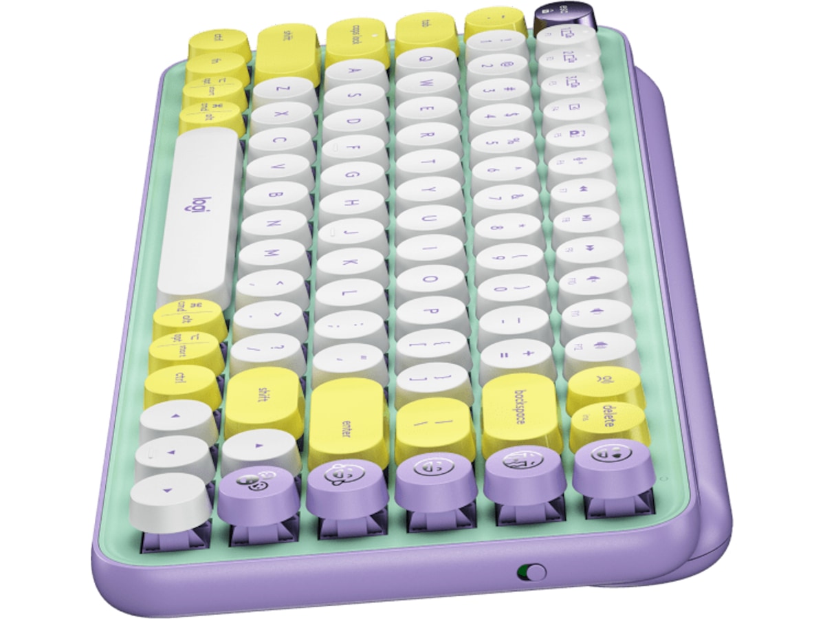 Slipp løs personligheten din på tvers av flere enheter om gangen ved å bruke POP Keys' Easy Switch-taster – som lar deg pare opptil 3 enheter og veksle mellom hvilken enhet du skriver på med bare ett enkelt trykk. Koble til datamaskinen, nettbrettet eller telefonen din4. Emojiene og programvaren støttes for øyeblikket kun på Windows og macOS via trådløs Bluetooth®-teknologi eller en Logi Bolt USB-mottaker.