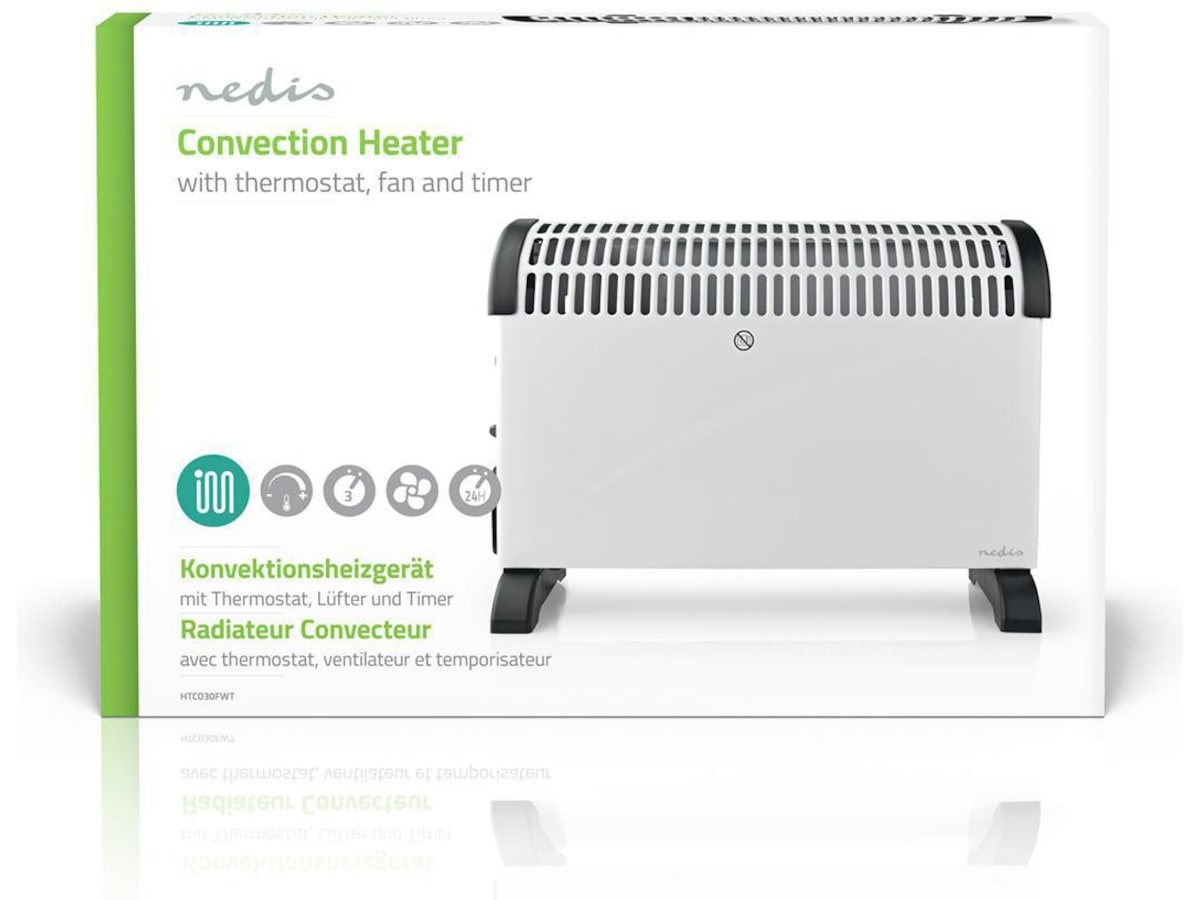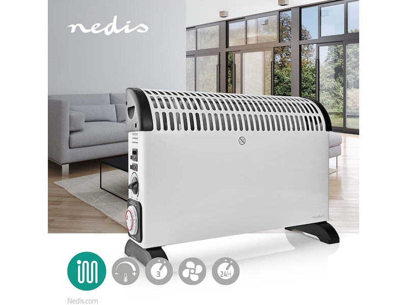 Denne konveksjonsvarmeren fra Nedis® med maksimal oppvarmingskapasitet på 2000 watt er det ideelle varmeapparatet hvis du ønsker å varme opp et rom raskt.