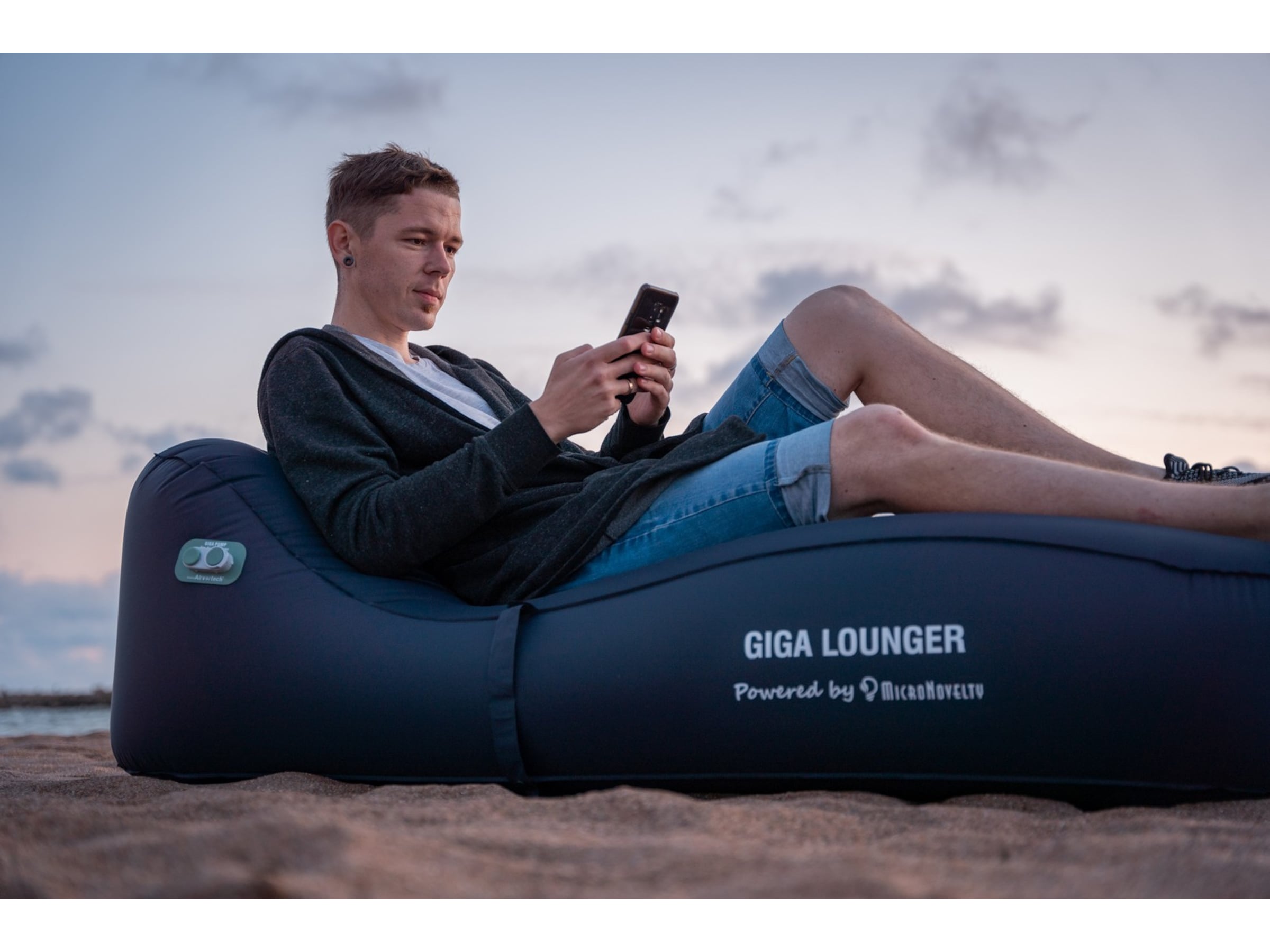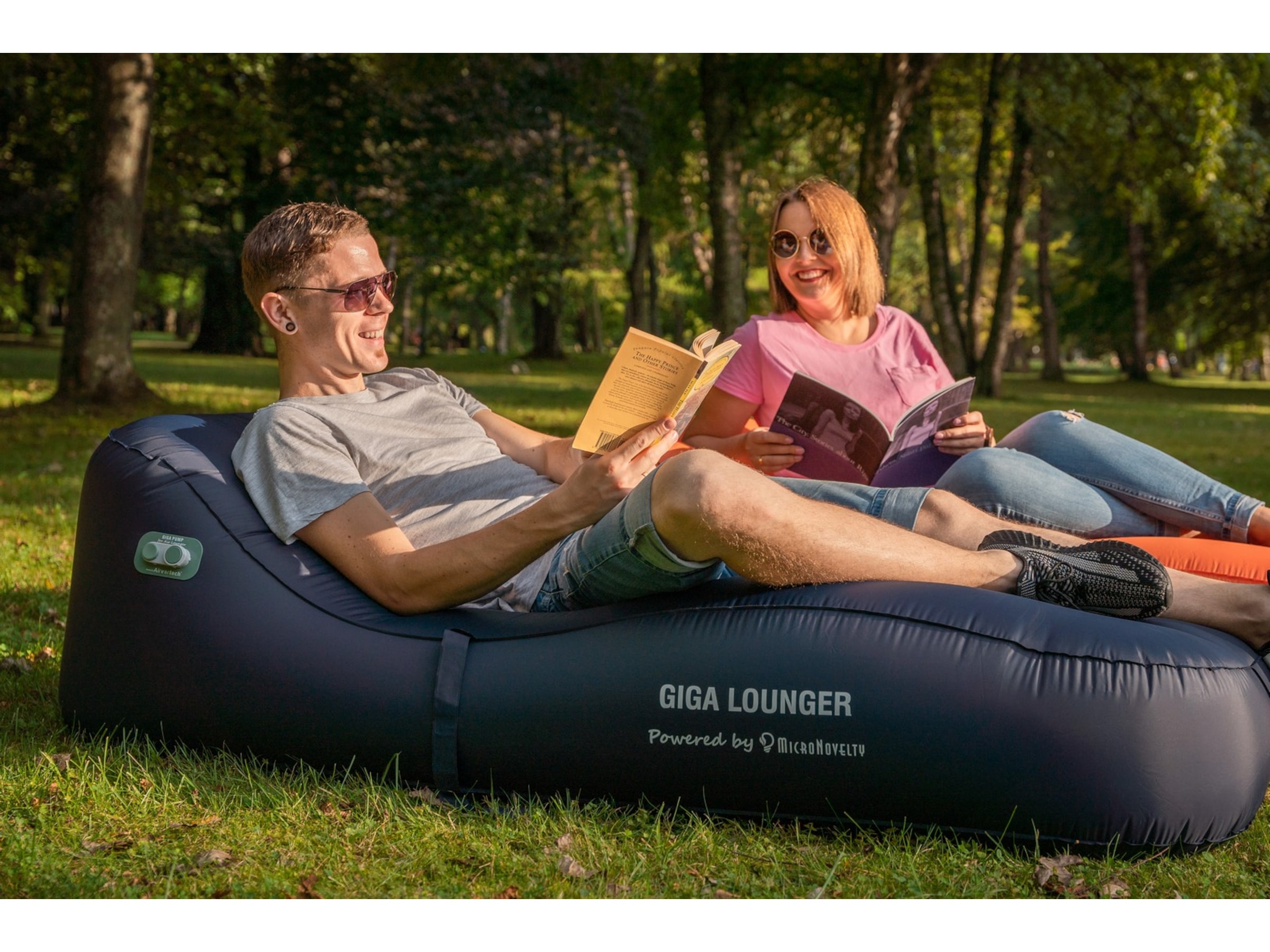 MicroNovelty GIGA LOUNGER automatisk oppblåsbar avslapningsseng er det perfekte valget når du vil finne et sted å lene deg tilbake og slappe av – når som helst, hvor som helst!