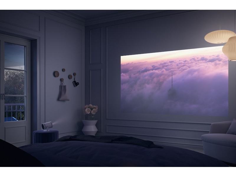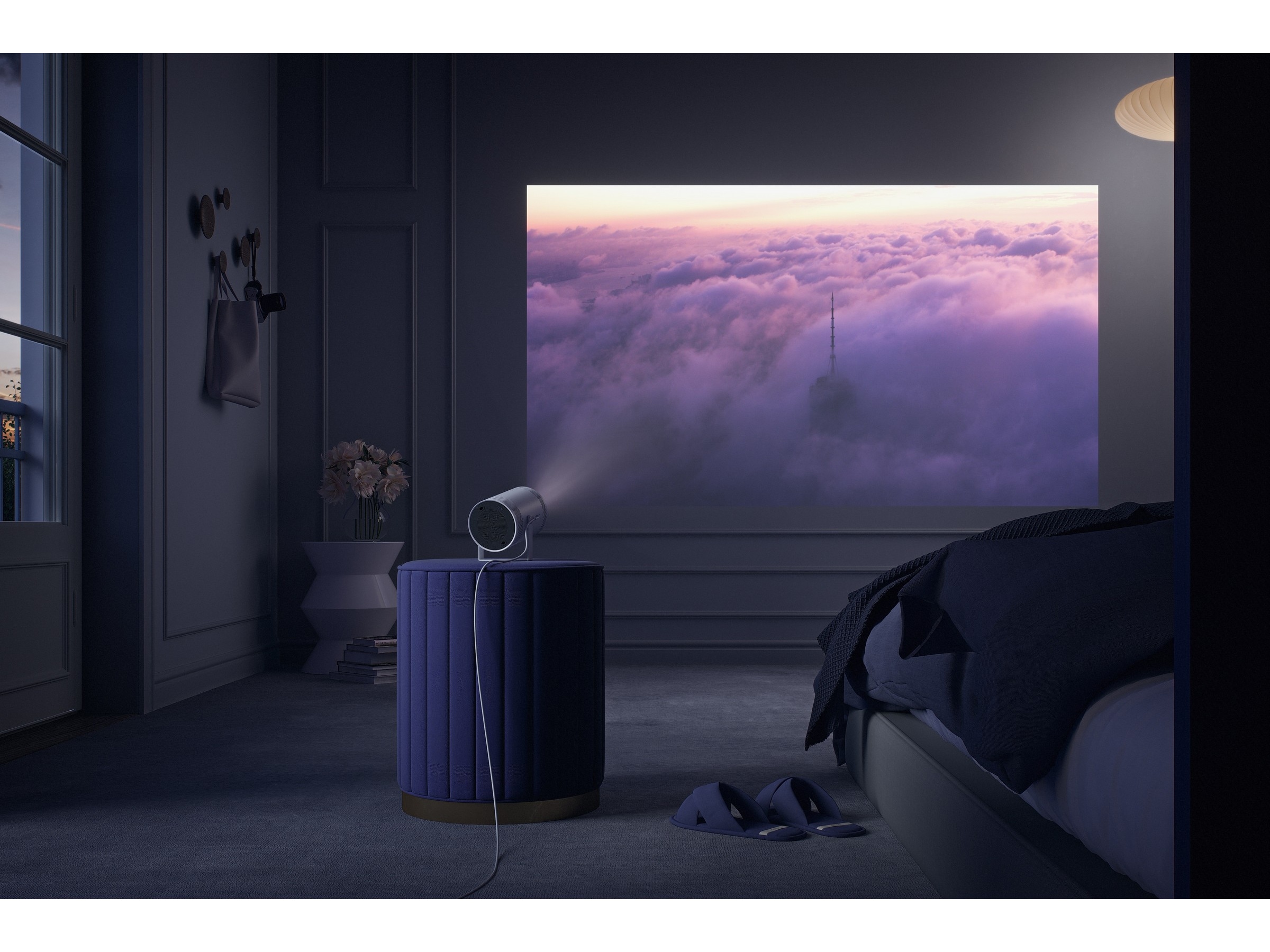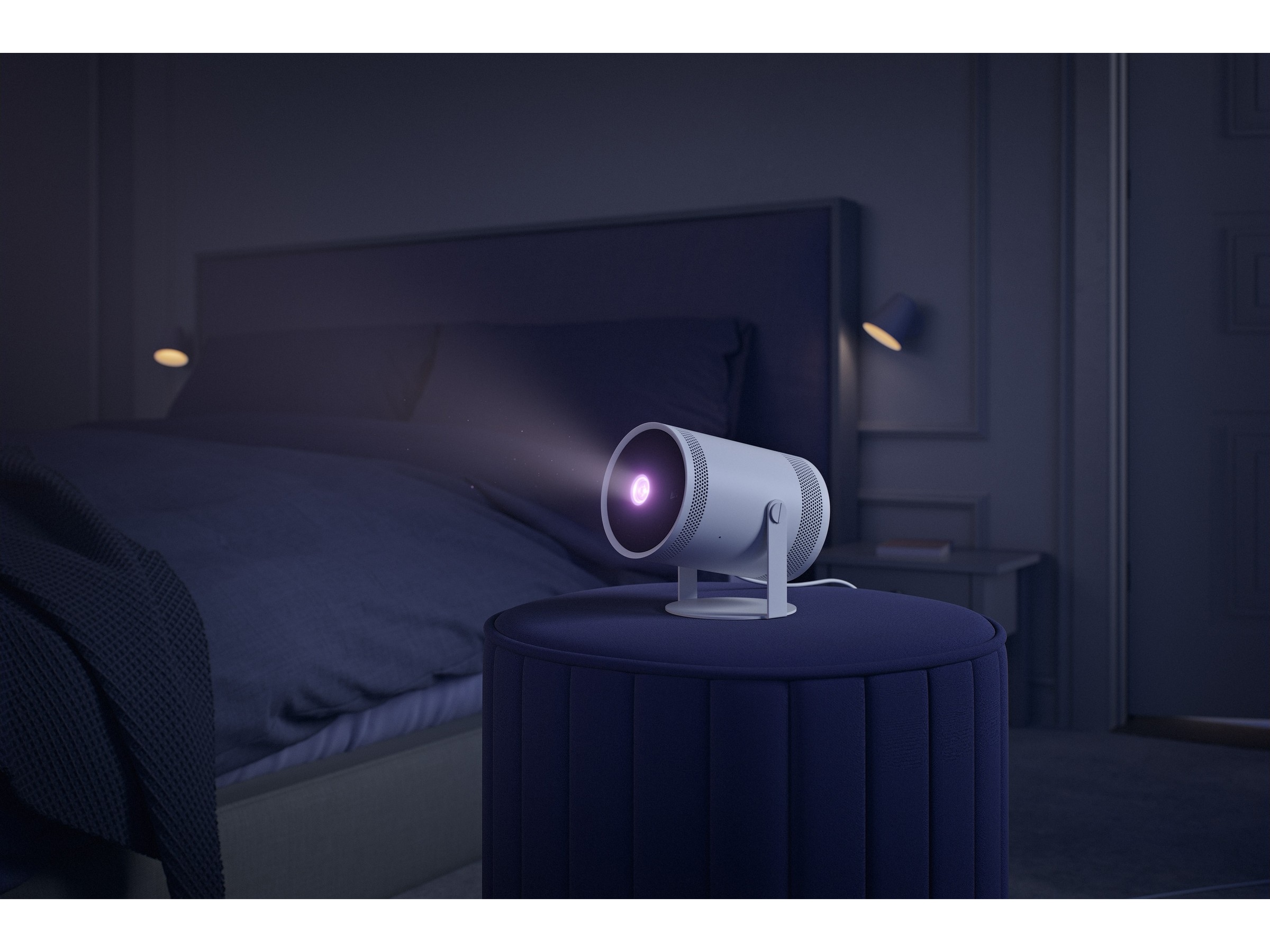 Ta med deg underholdningen til hytta, eller stream favorittseriene dine mot taket på soverommet. Mini-projektoren The Freestyle sin unike design og innebygde høyttaler gjør det enkelt å ta med seg storskjermopplevelsen til hvilket rom du måtte ønske. Sett den der du vil ha den, rett den mot en glatt flate og trykk på Play.