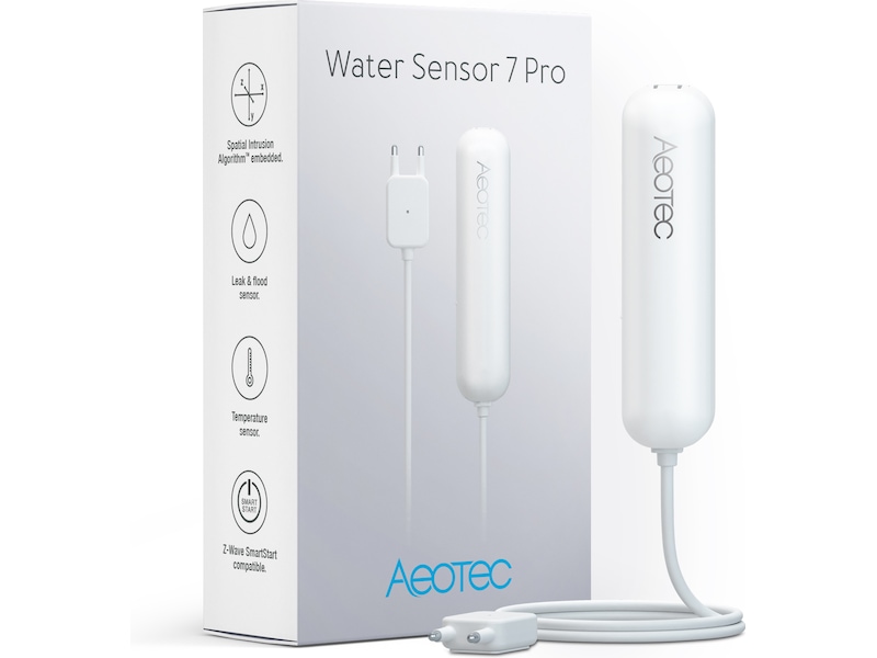 Water Sensor 7 Pros nøyaktighet, pålitelighet og kompatibilitet strekker seg helt fra grunnlaget. Med en lekkasjeprosessor på kun 70 x 30 mm er den blitt bygd på toppen av Aeotecs eksklusive Gen7-teknologi som gjør at den kan installeres trådløst nesten hvor som helst i et rom og fungere i 3 år før det enkle 3,6 volts-batteriet må skiftes ut.