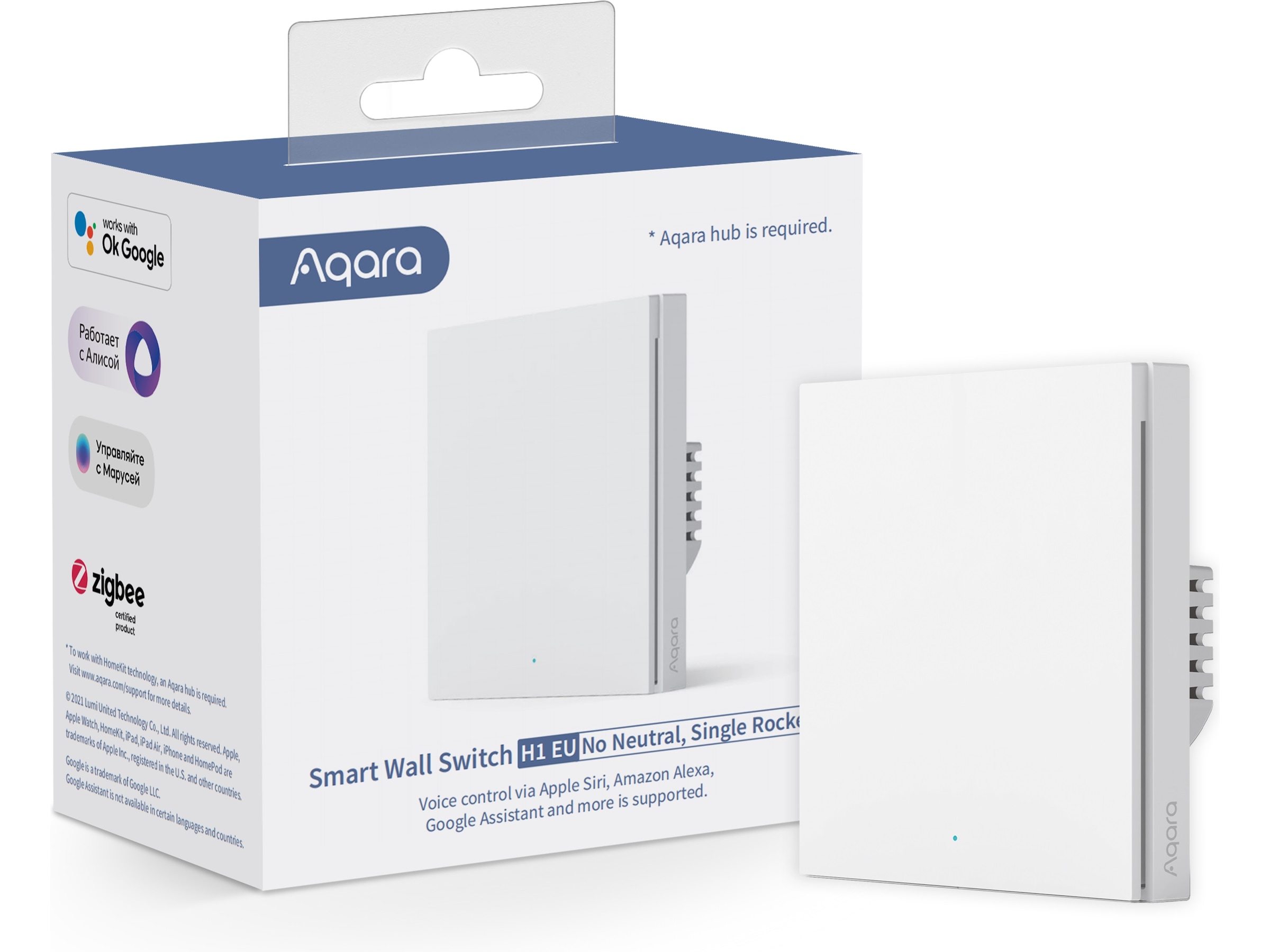 Aqara Smart Wall Switch H1 EU (No Neutral) er basert på den trådløse kommunikasjonsprotokollen Zigbee 3.0*, og er en smart bryter som slår på og av strømmen til lys og andre elektriske enheter.