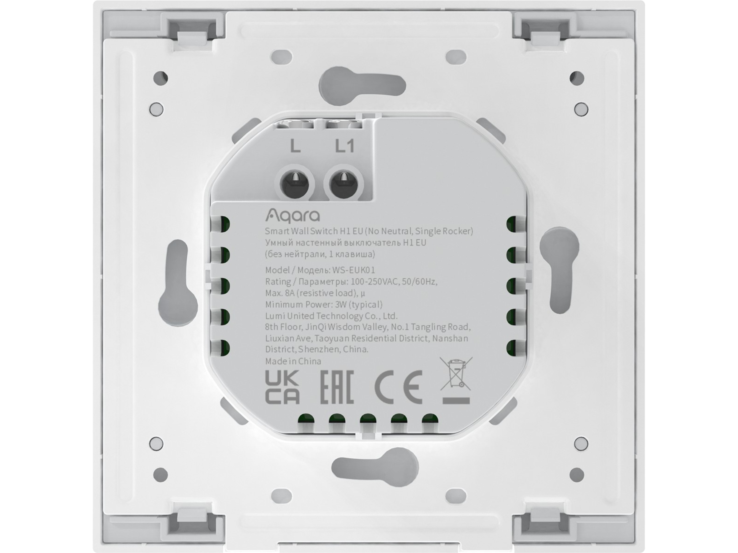 Aqara Smart Wall Switch H1 (ingen nøytral. enkel bryter) (hvit)