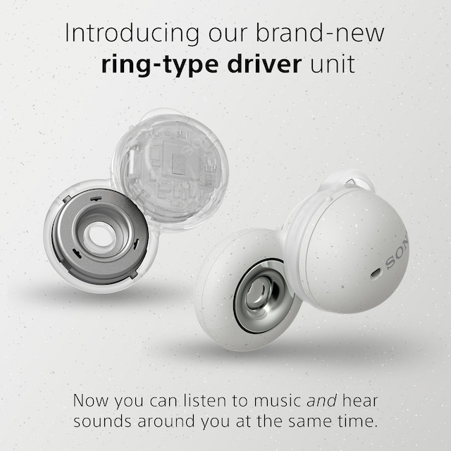 LinkBuds (produktkode WF-L900) integrerer alle verdenene dine takket være et åpent ringdesign som lar deg høre samtaler, musikk og annet nettinnhold når som helst og hvor som helst – samtidig som hodetelefonene holder deg oppmerksom på lydene rundt deg. Alt dette er kombinert i et lite og lettvektig design, som gjør at du knapt føler at du har dem på deg. Dette betyr at du komfortabelt kan bruke dem i flere timer på rad, samtidig som du er tilkoblet og alltid tilgjengelig - du kommer aldri til å gå glipp av noe viktig som skjer i livet ditt.