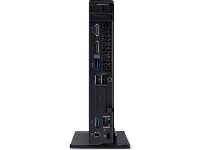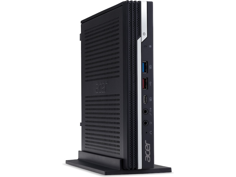 Acer Veriton N-serien er en stasjonær liten formfaktor-PC som er designet for å gi ytelse for kommersiell bruk uten at du trenger et stort tårn. Gled deg over lynrask svartid fra 11. generasjons Intel® CoreTM i5-prosessor med utvidet plass for porter og annet tilbehør som er godt egnet for bedrifter og bedriftsmiljøer.