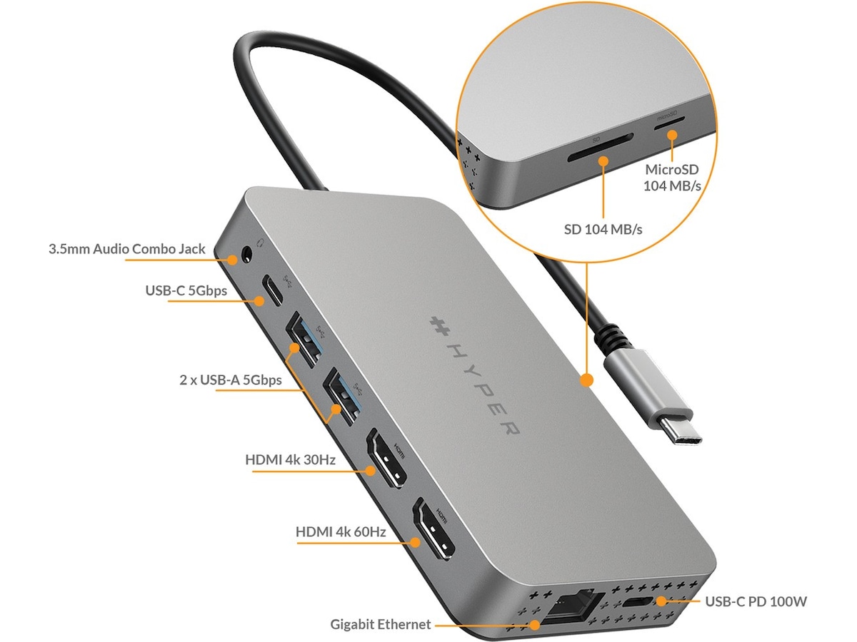 HyperDrive Dual 4K HDMI 10-i-1 USB-C-hub for M1/M2 MacBook