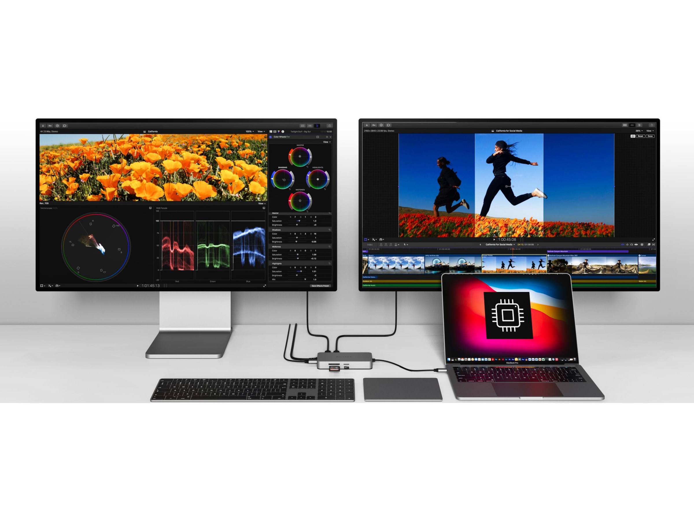 Gi M1/M2 MacBook, PC eller Chromebook muligheten til å koble til 2 utvidede skjermer med krystallklar 4K HDMI-video.